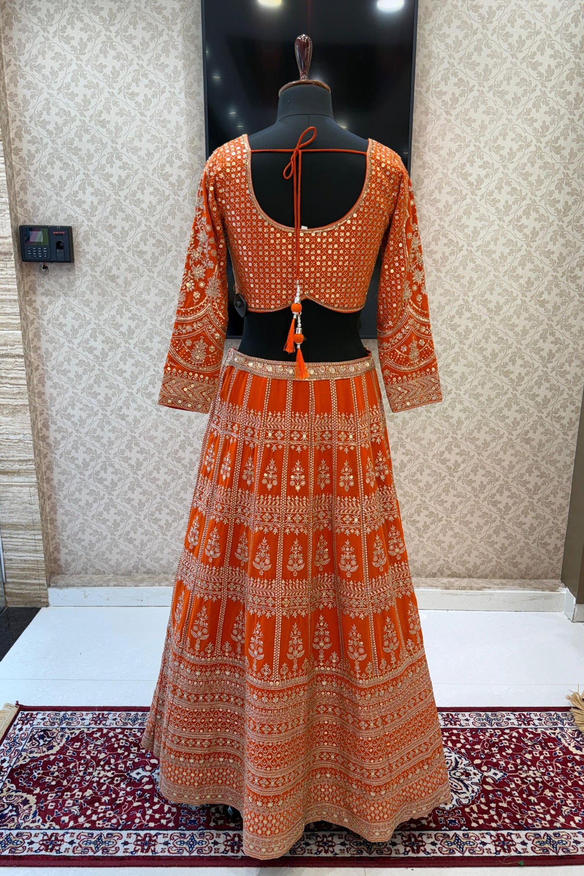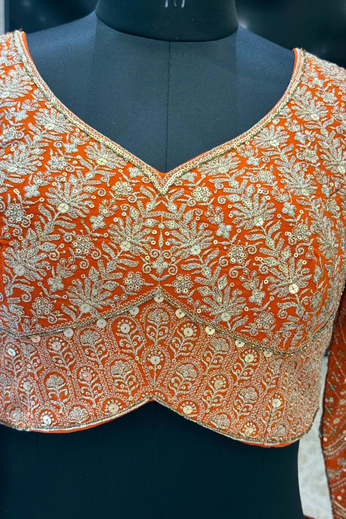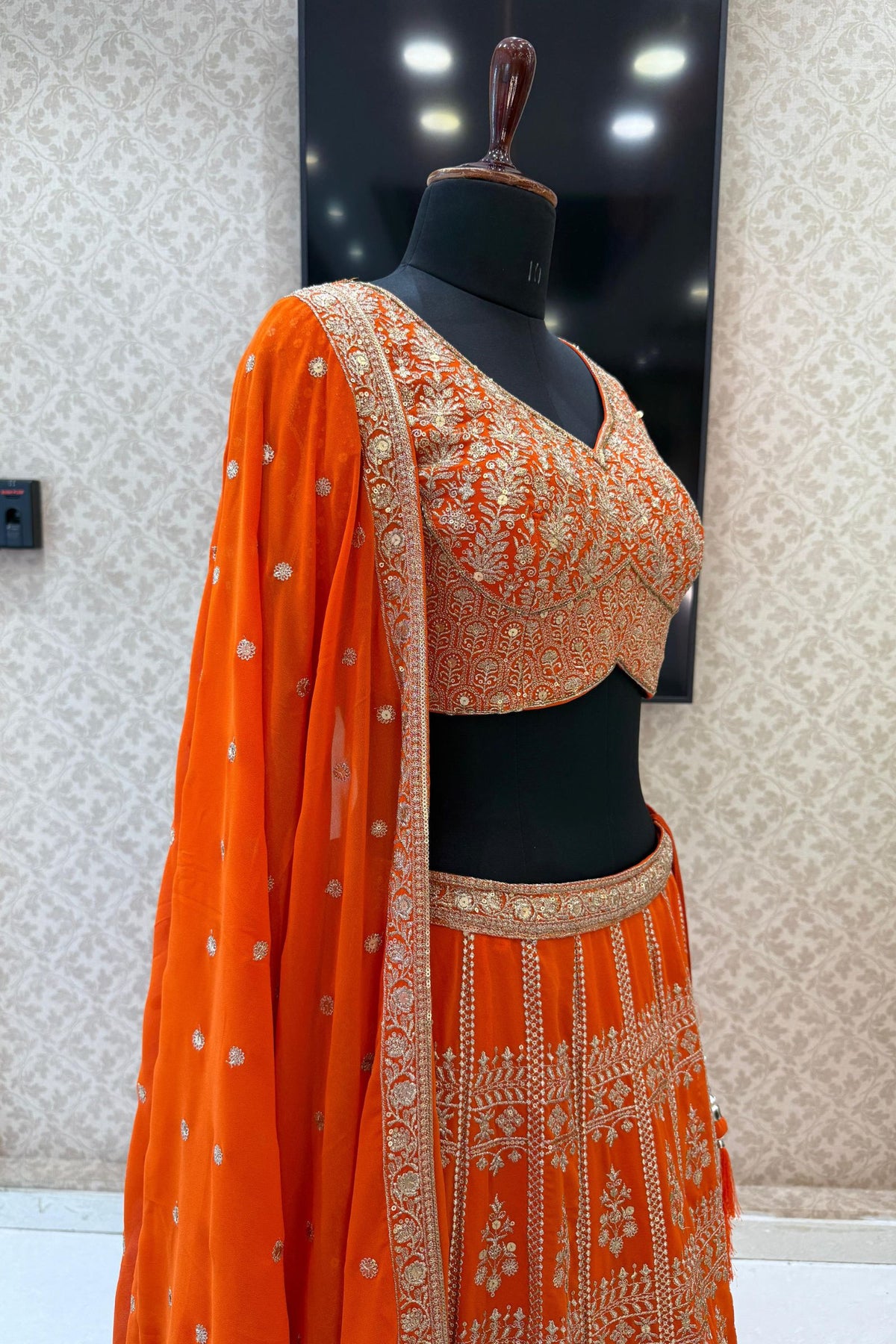 Orange Sequins and Zari work Crop Top Lehenga