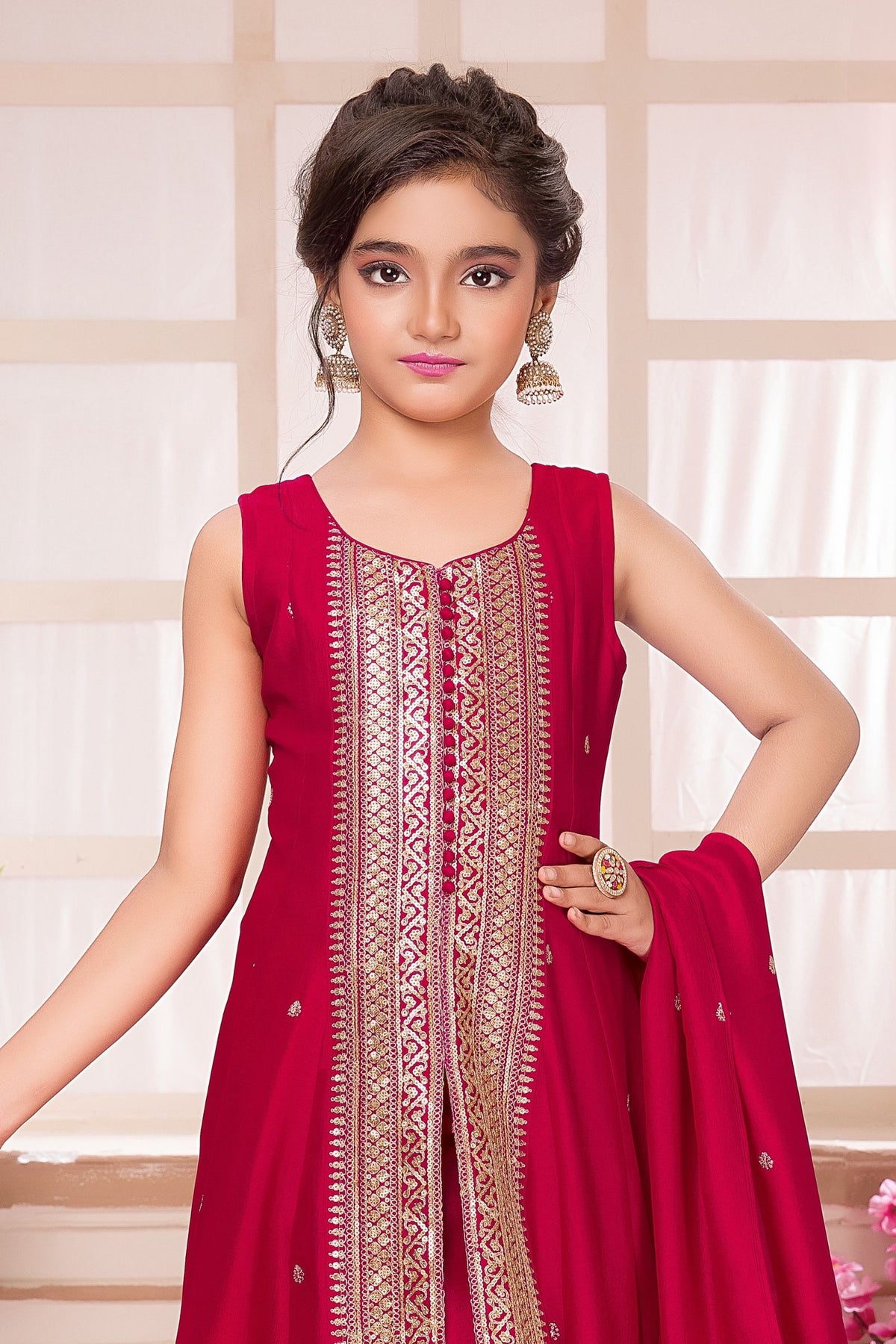 Rani Pink Sequins and Zari work Salwar Suit for Girls