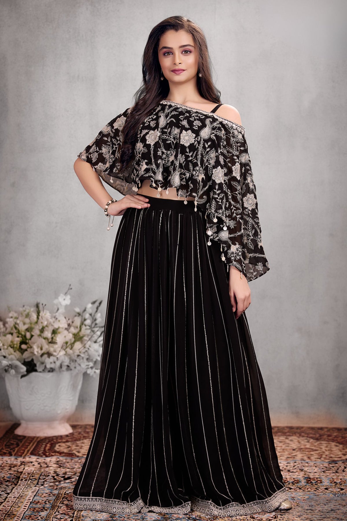 Black Sequins, Thread and Beads work Kaftan Styled Palazzo Set For Girls