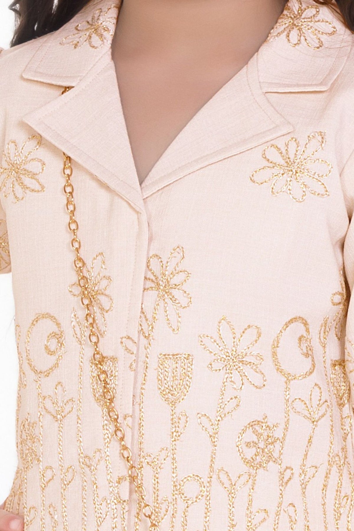Cream Zari Thread work Co-ord Set for Girls with Bag