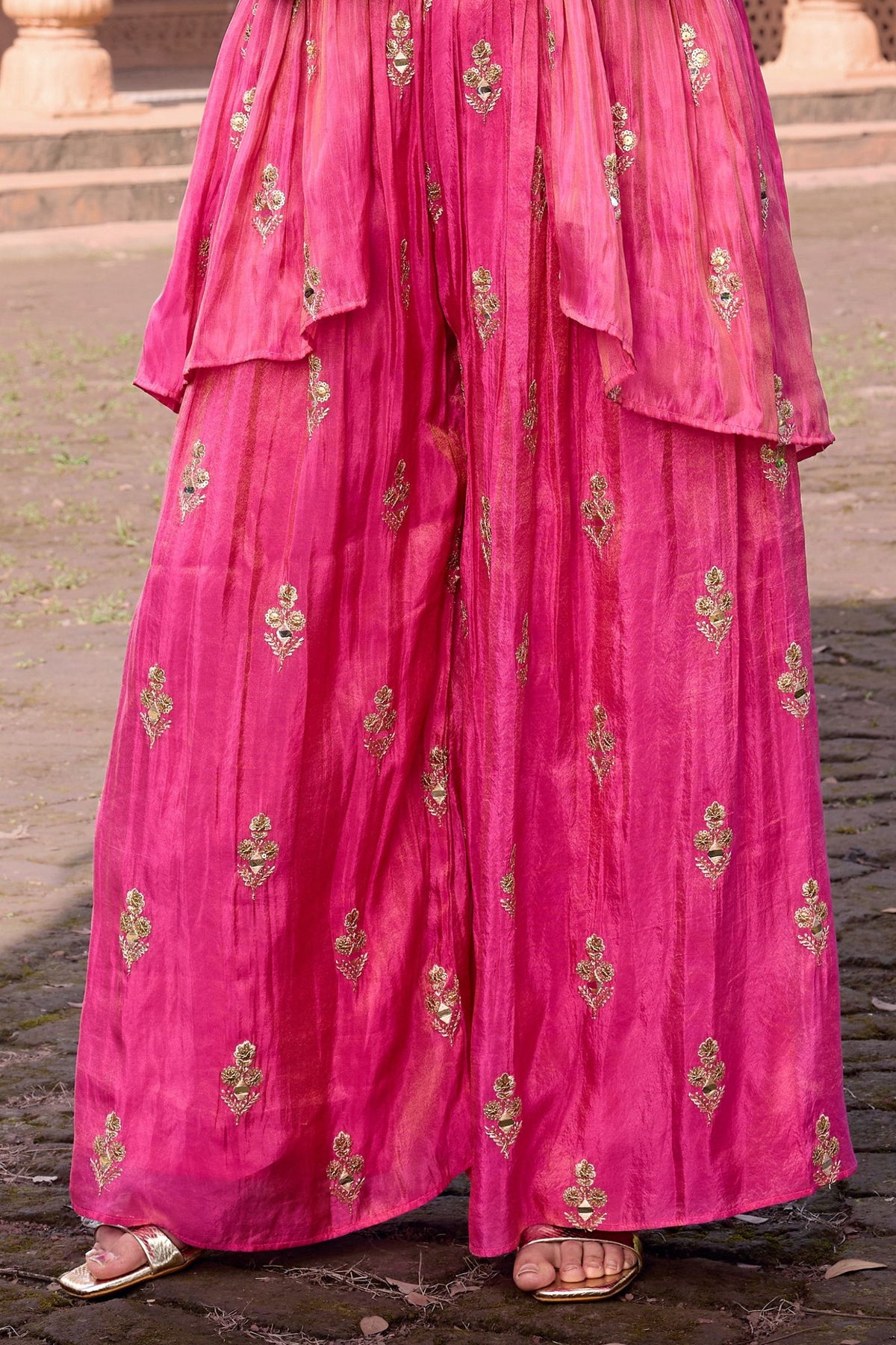 Lotus Pink Sequins and Zari work Overcoat Styled Palazzo Set For Girls