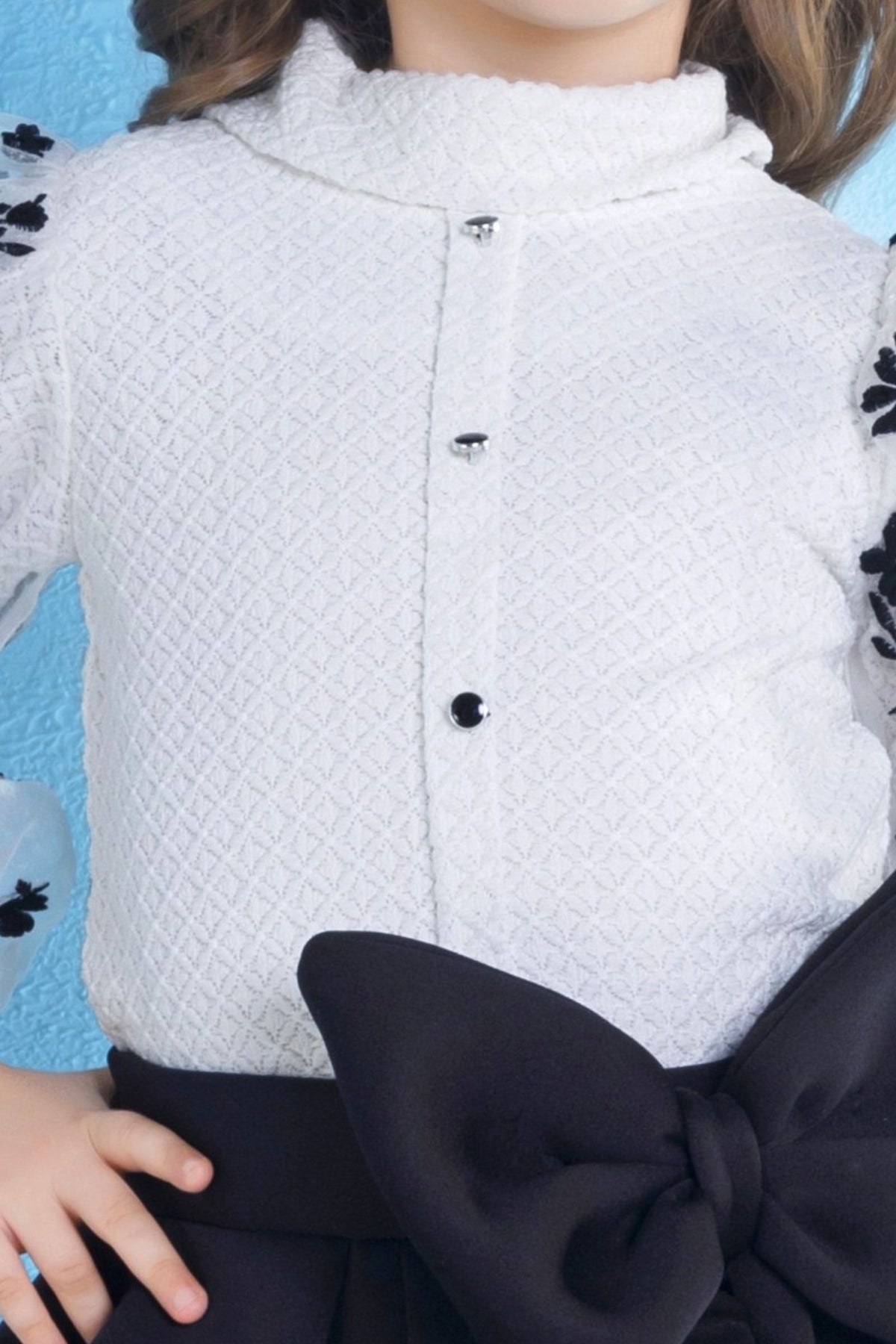 White with Black Velvet Embroidery work Top and Skirt for Girls