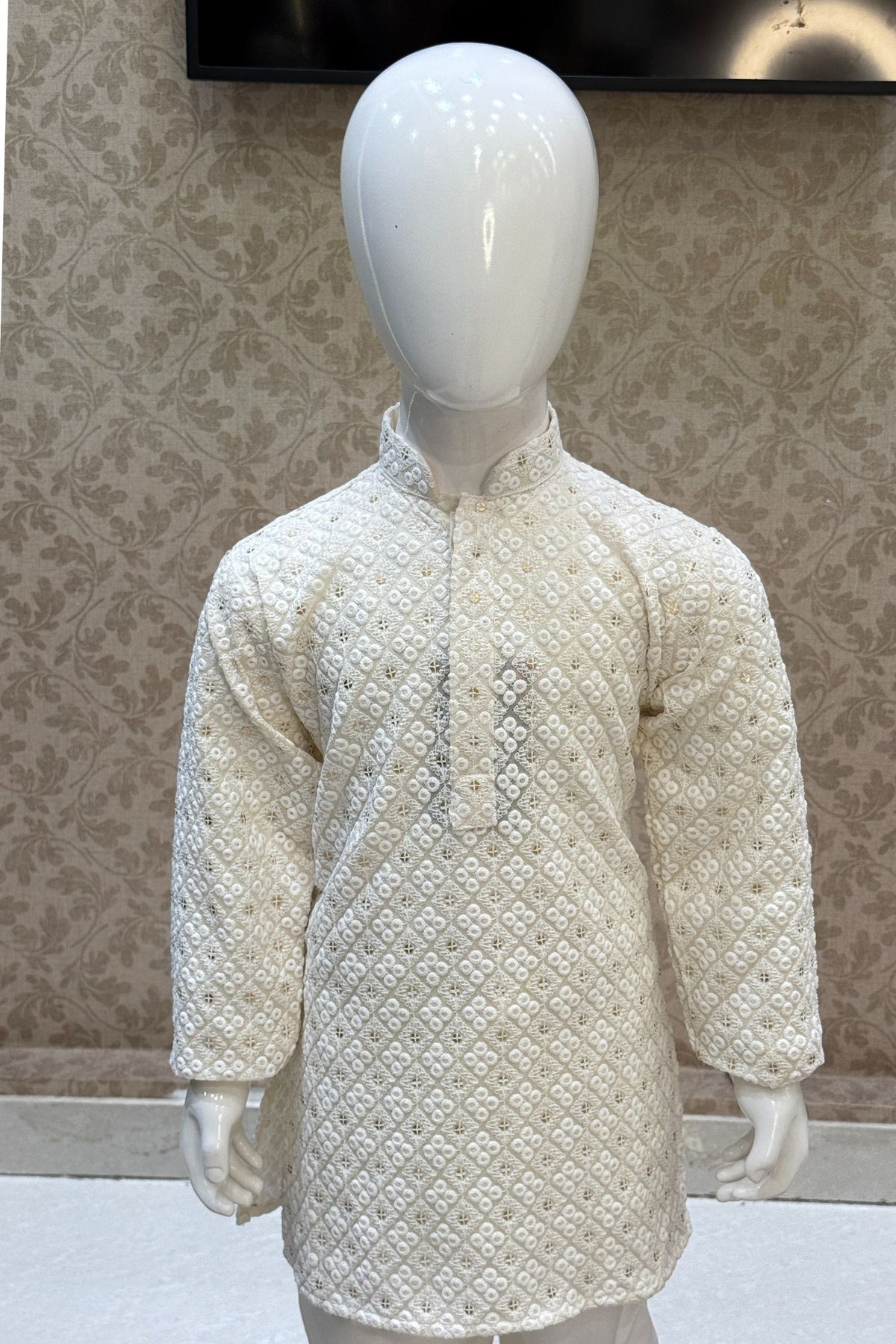 Cream Sequins and Embroidery work Kurta Set for Boys