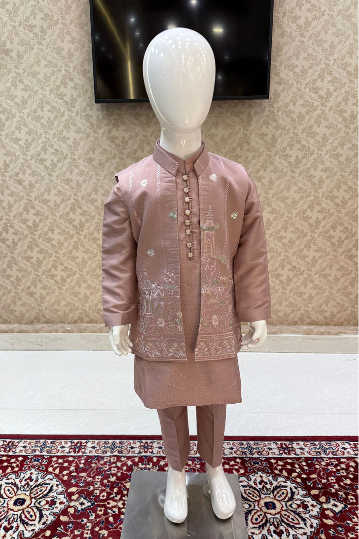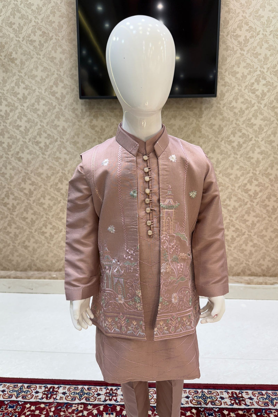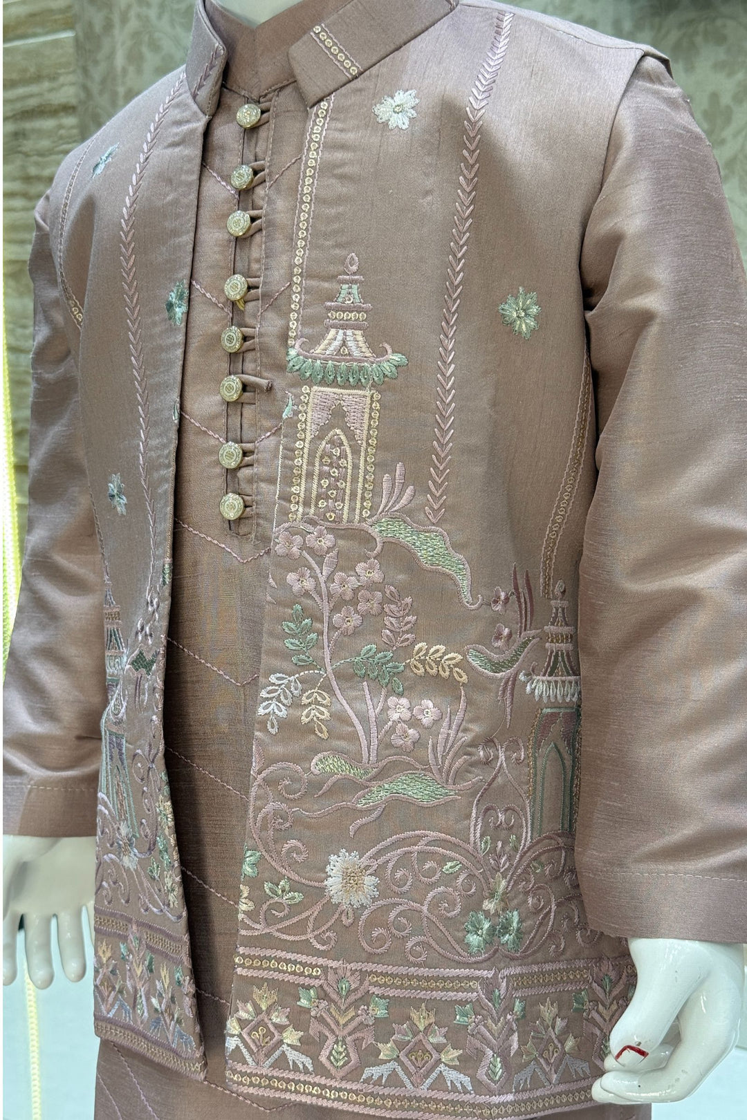 Onion Embroidery, Sequins and Zari work Waist Coat Kurta Set for Boys
