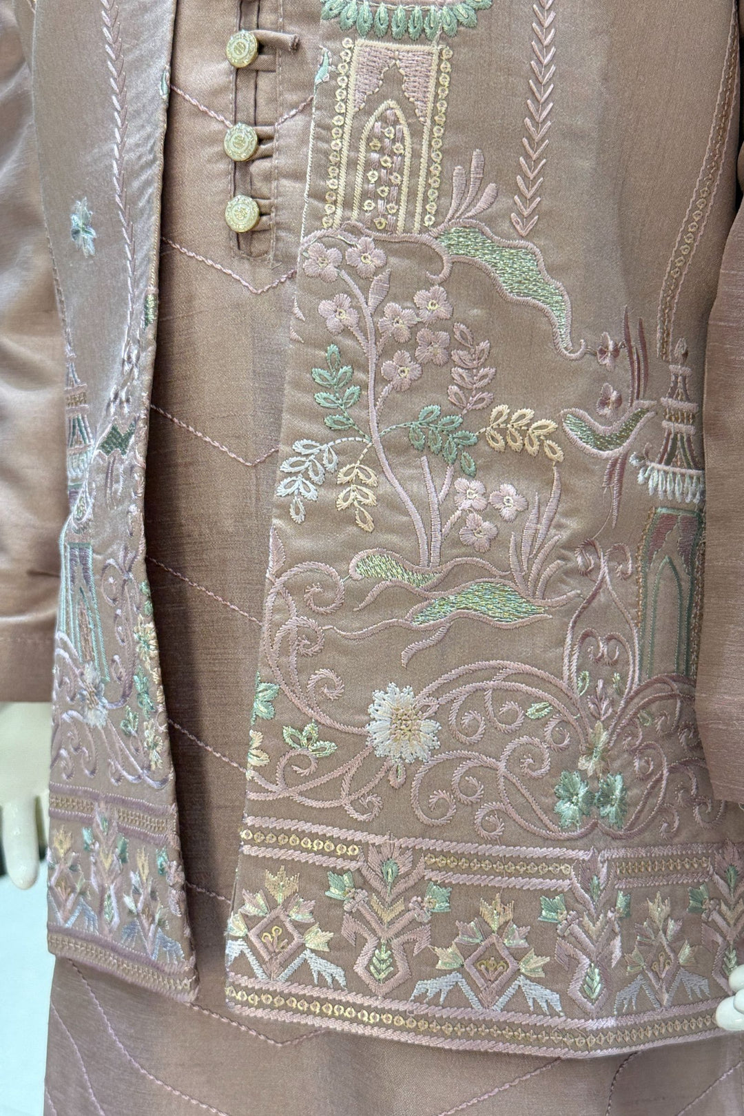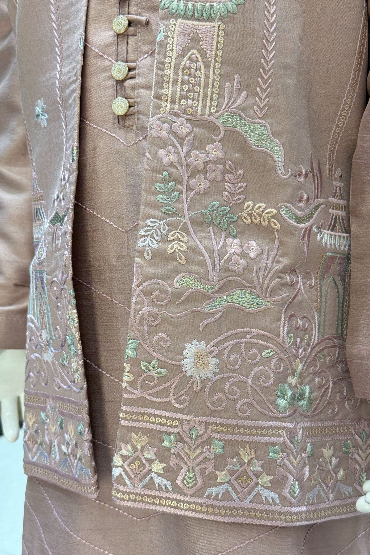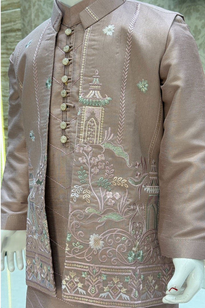 Onion Embroidery, Sequins and Zari work Waist Coat Kurta Set for Boys