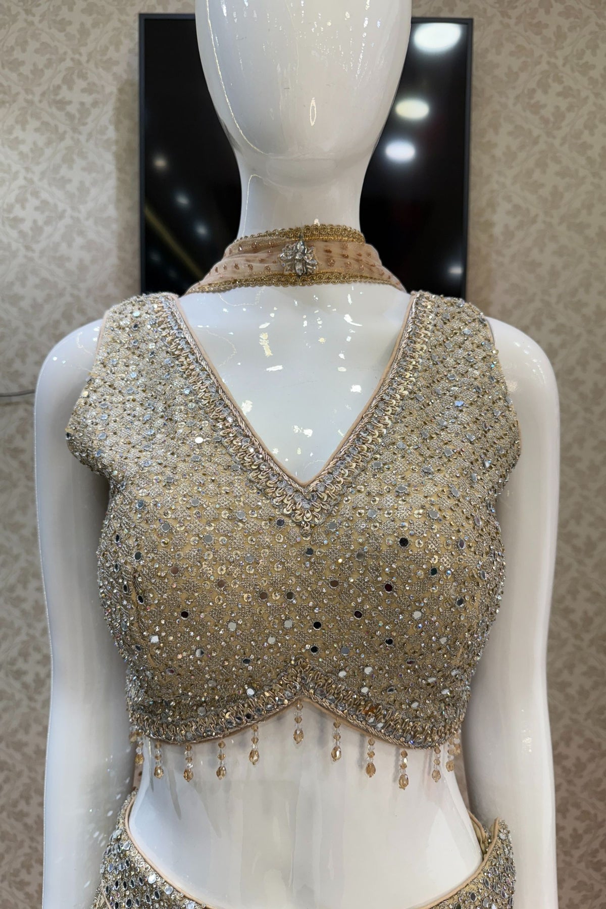 Beige with Maroon Zari, Sequins, Zardozi, Beads, Mirror and Stone work Crop Top with Palazzo Pant