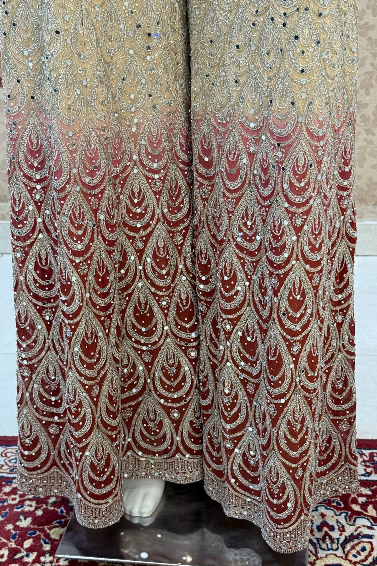 Beige with Maroon Sequins, Zardozi, Beads and Stone work Crop Top with Palazzo Pant