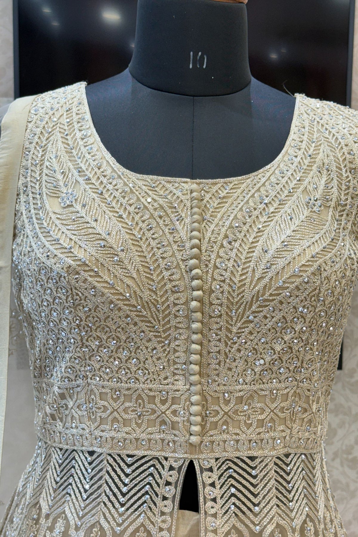 Chiku Stone and Zari Thread work Long Top Lehenga
