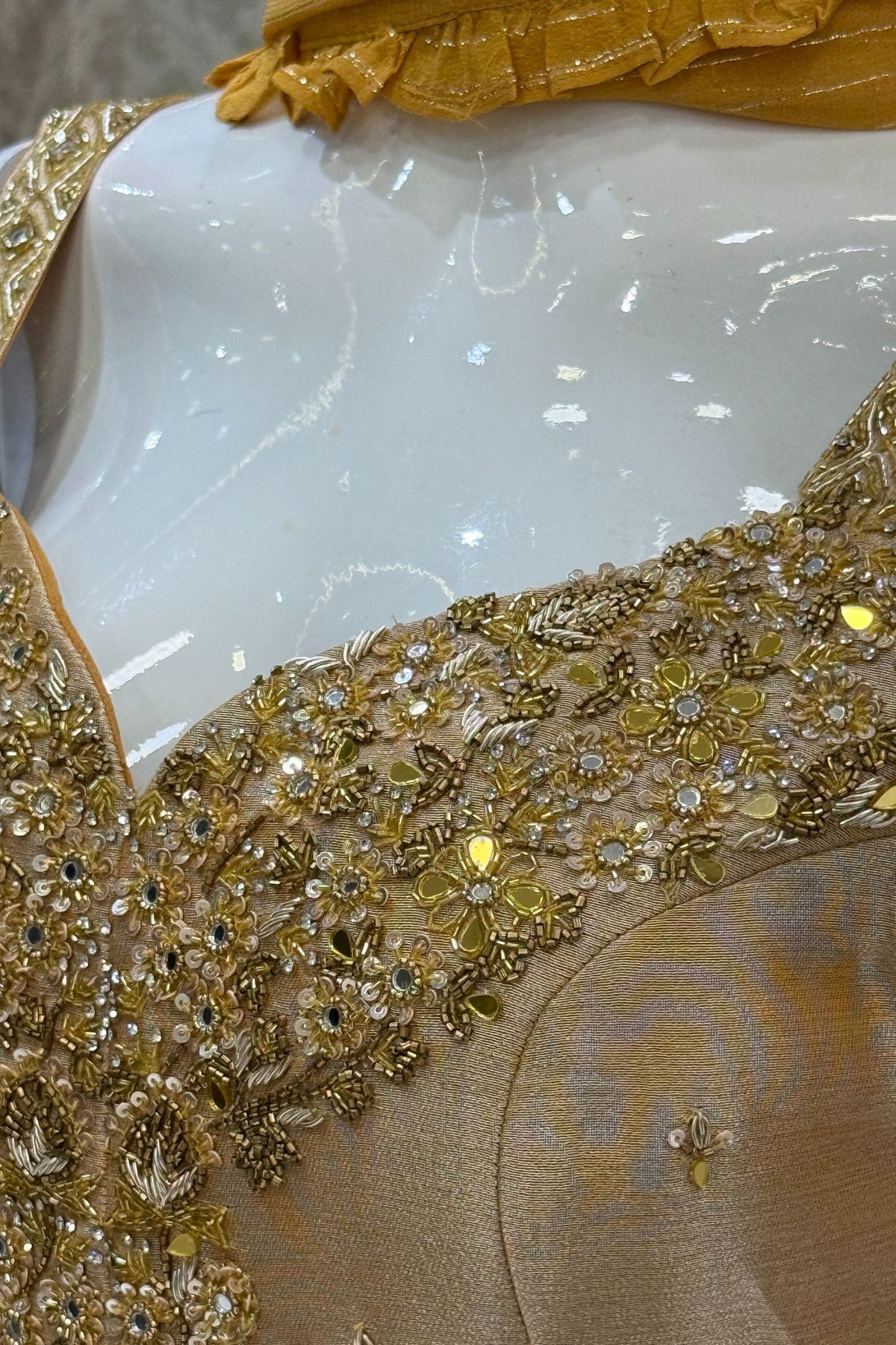 Mustard Beads, Zardozi, Stone and Mirror work Palazzo Salwar Suit