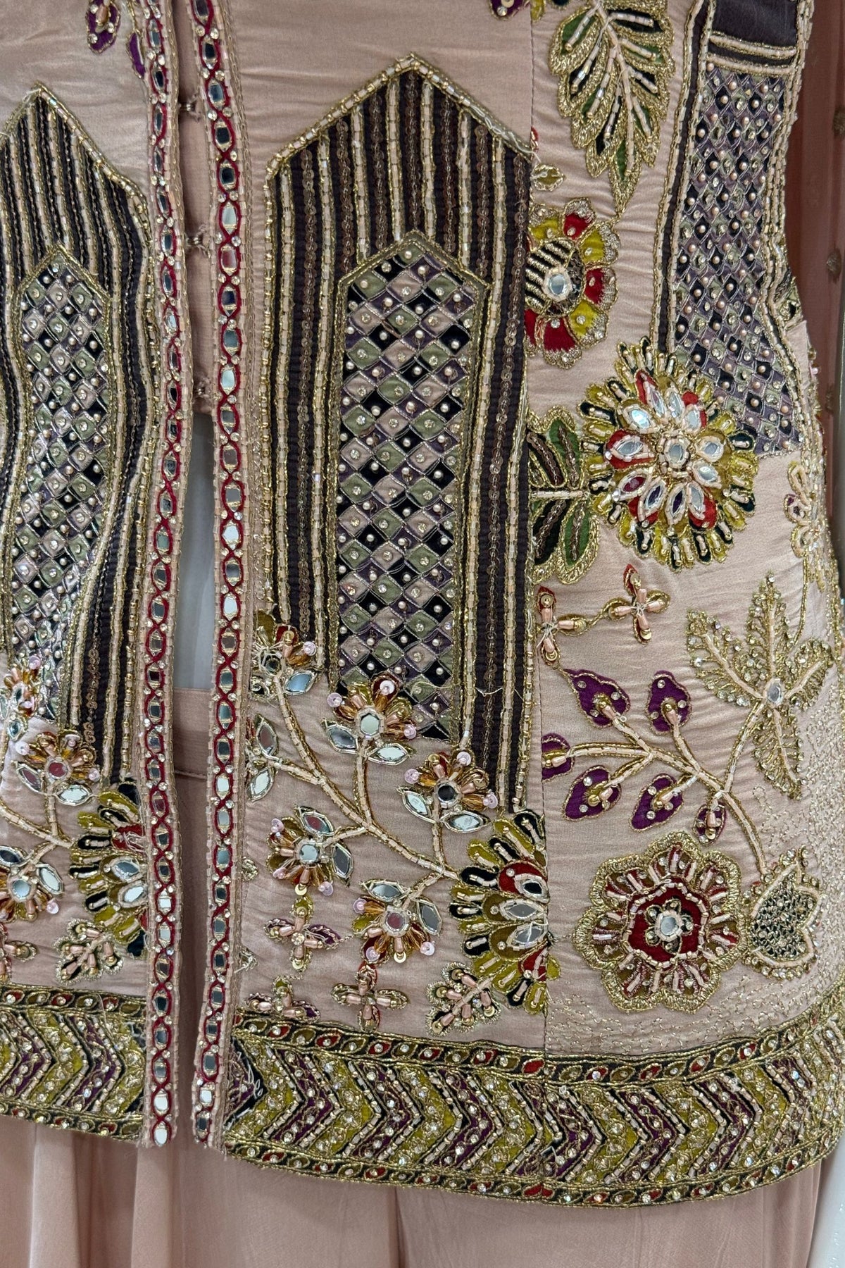 Peach Beads, Mirror, Zari and Thread work with Digital Print Palazzo Salwar Suit