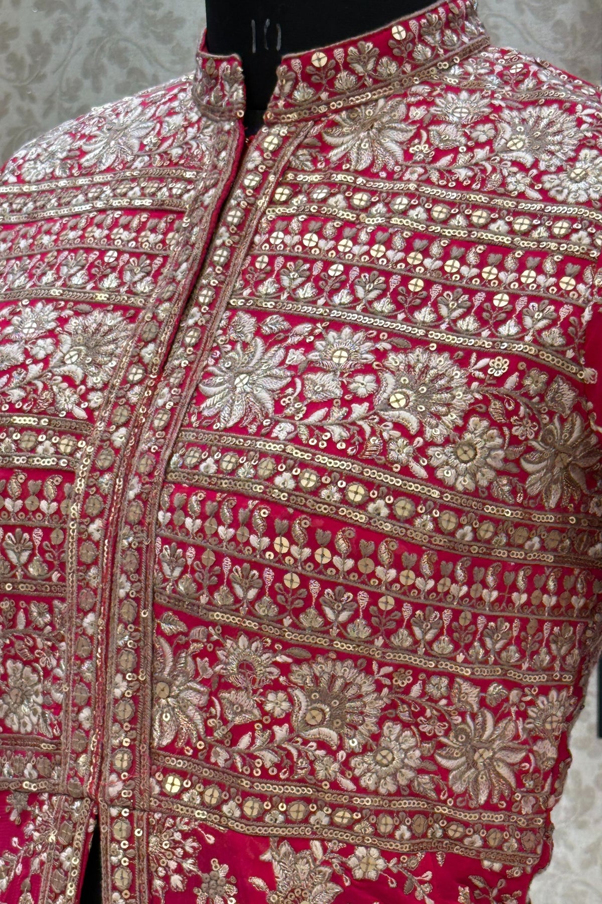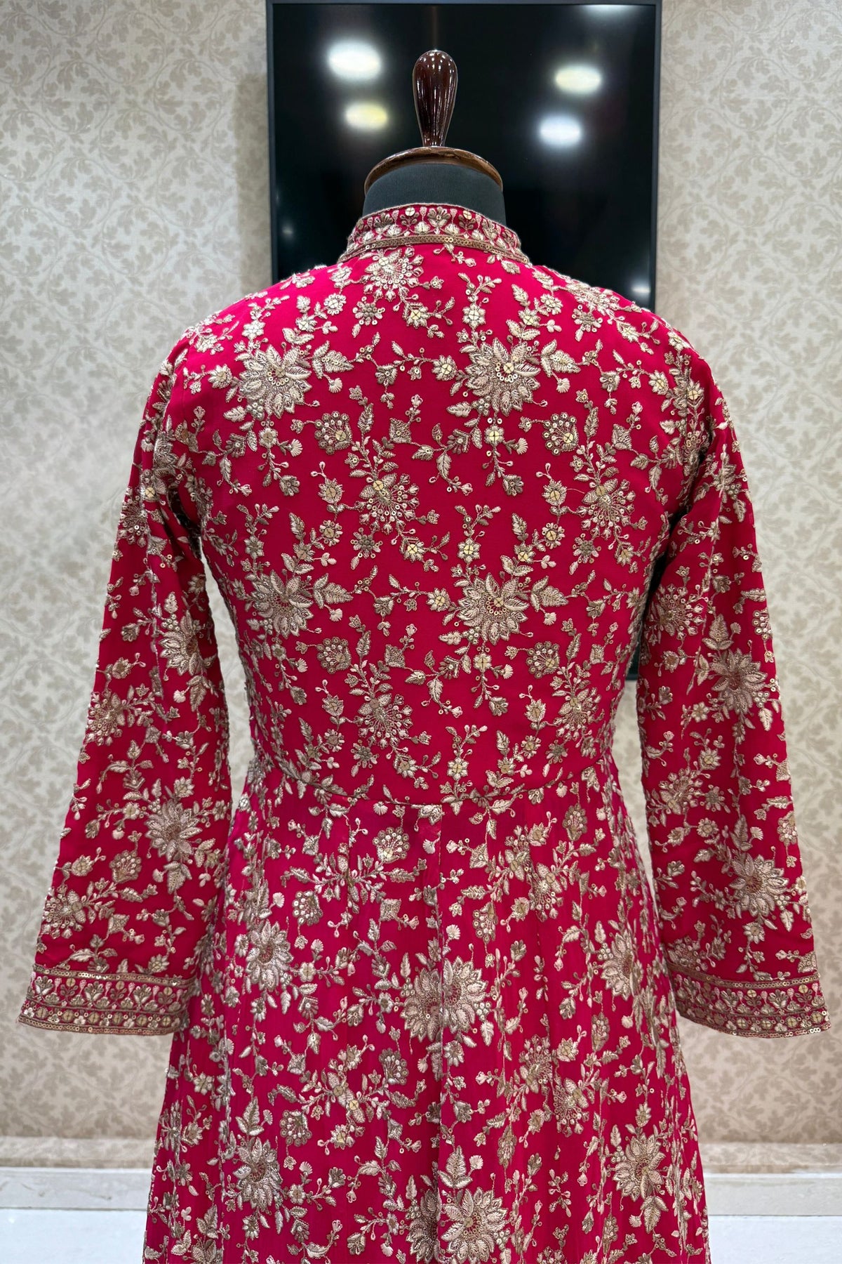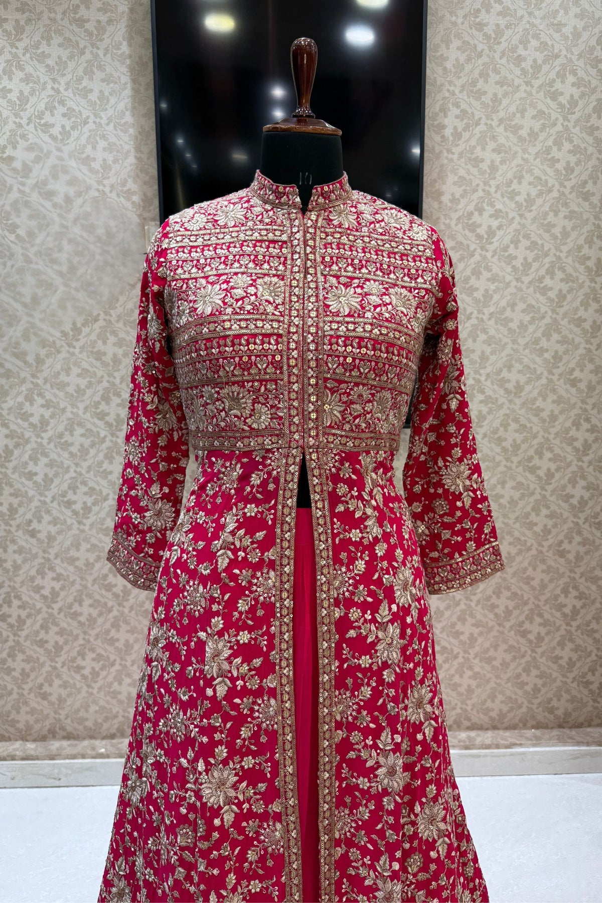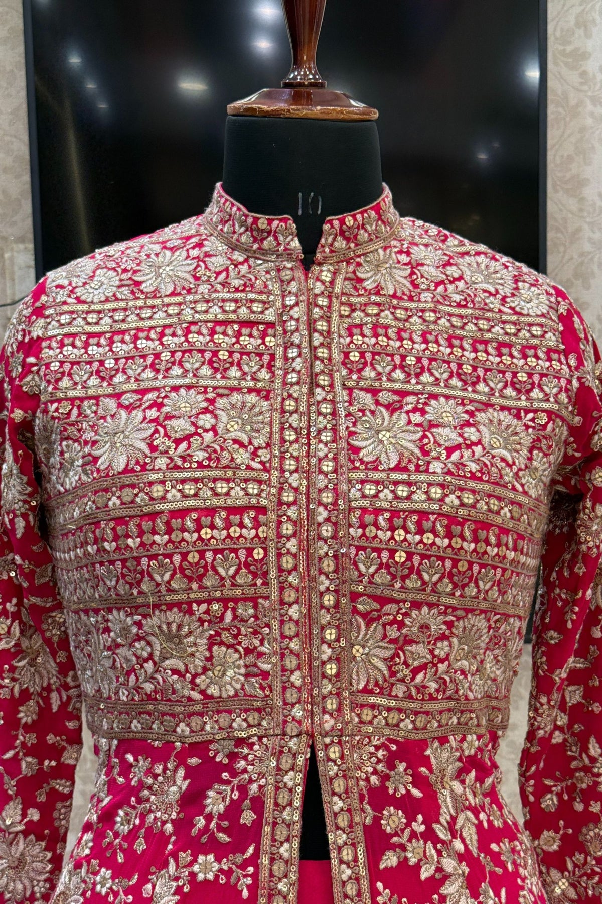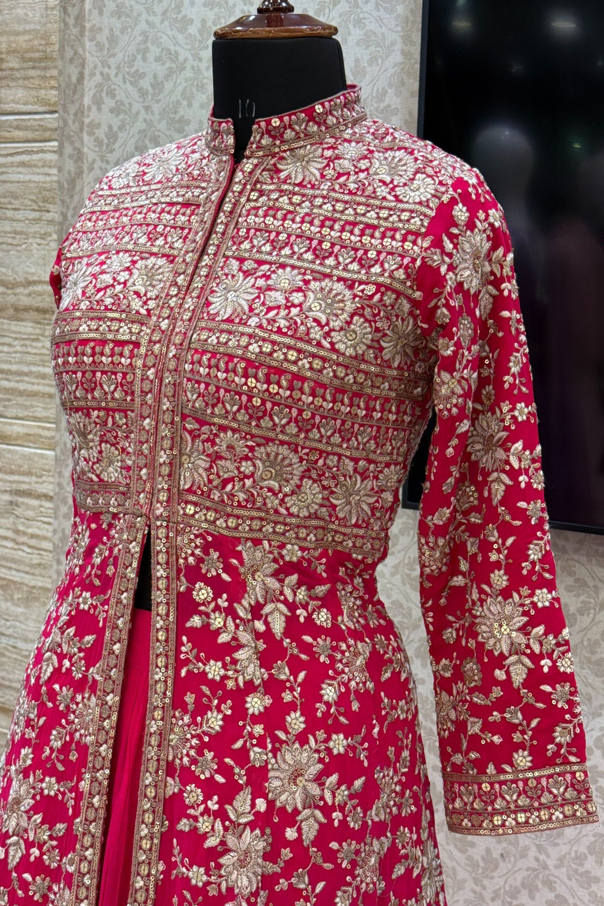 Rani Pink Embroidery and Sequins work Mastani Styled Long Top Lehenga
