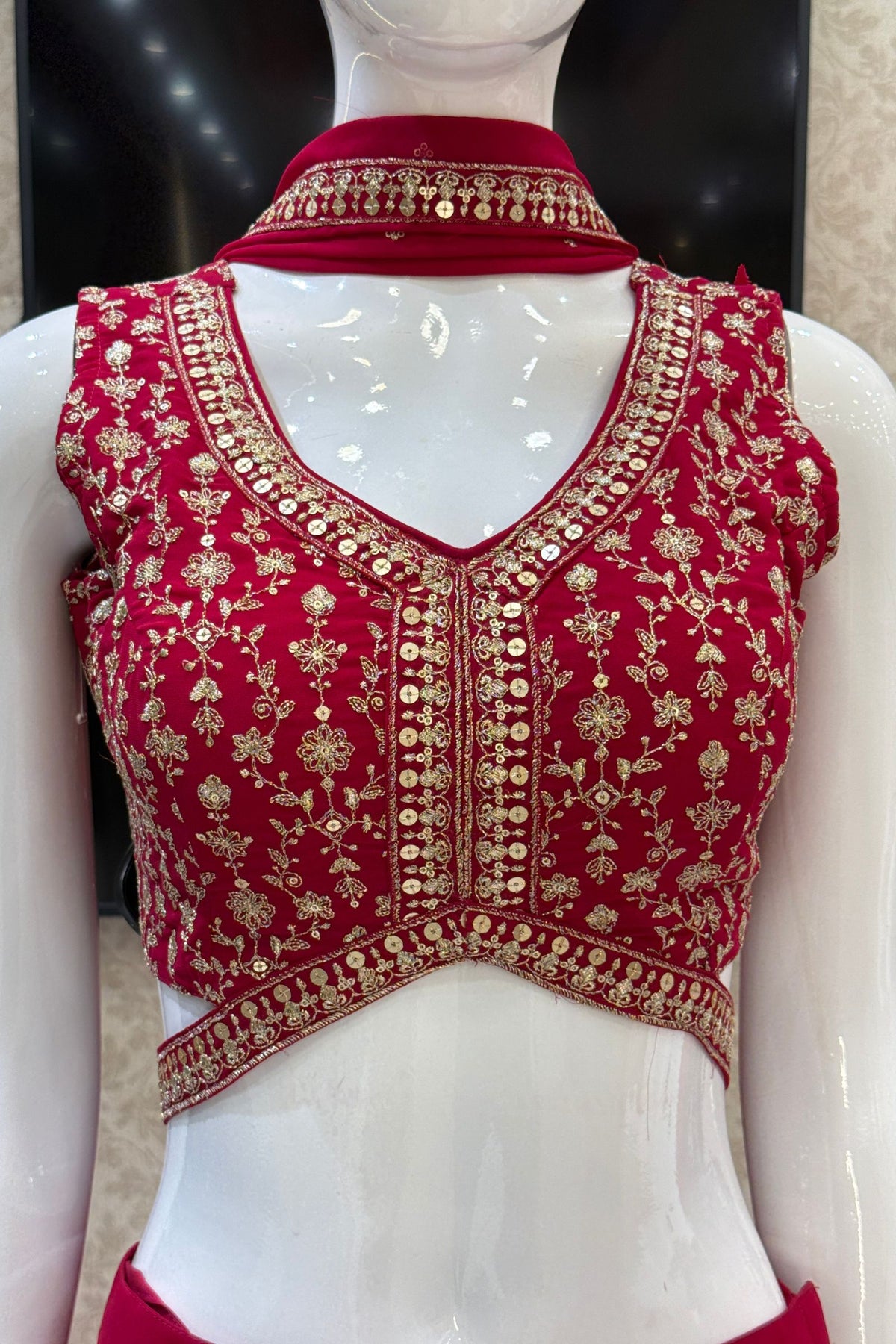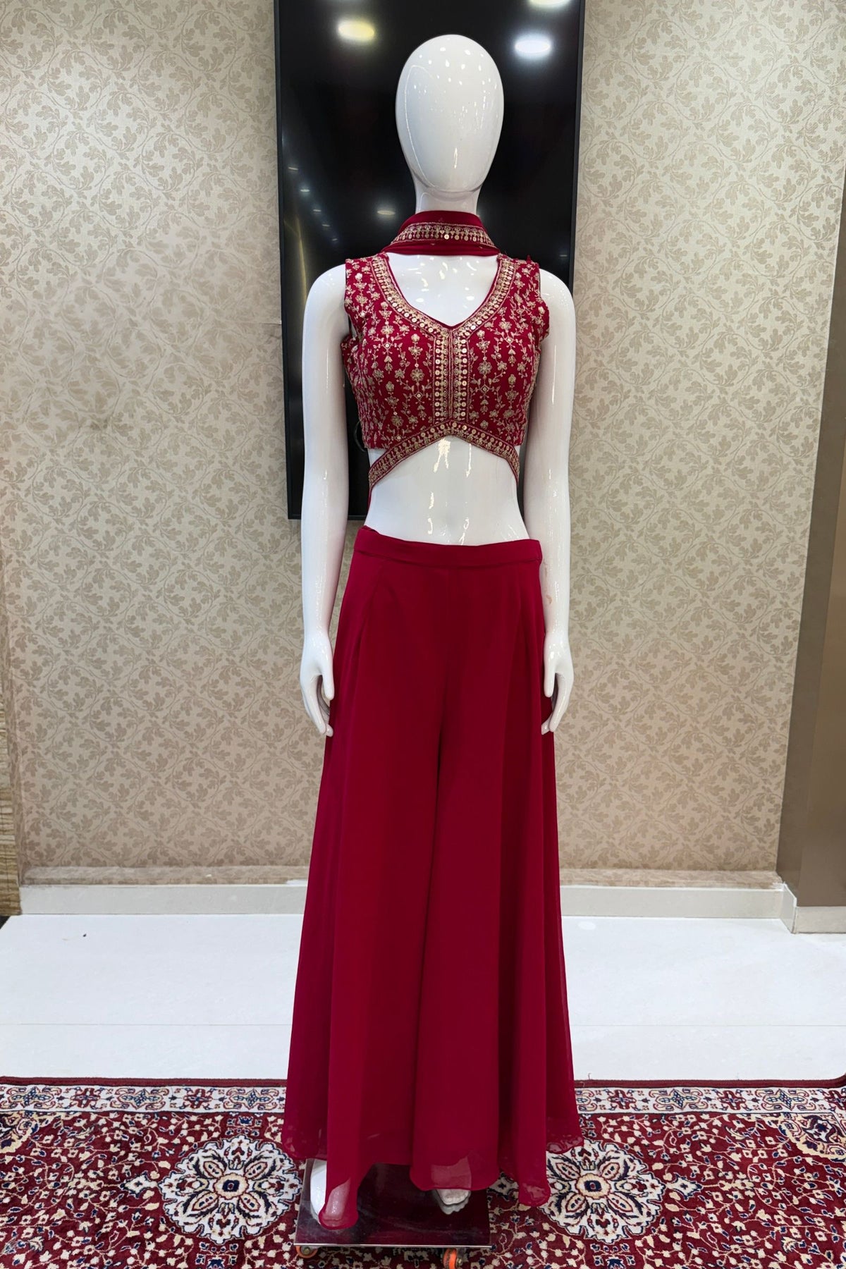 | Fabric | Top - Georgette, Palazzo - Georgette, Sleeves - Georgette and Dupatta - Georgette |