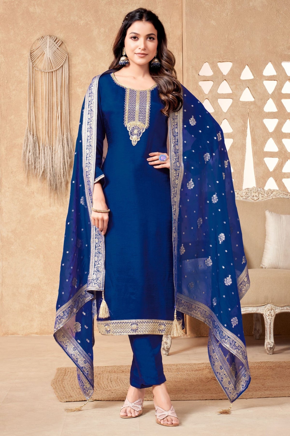 Royal Blue Sequins, Zari, Beads and Zardozi work Straight Cut Salwar Suit