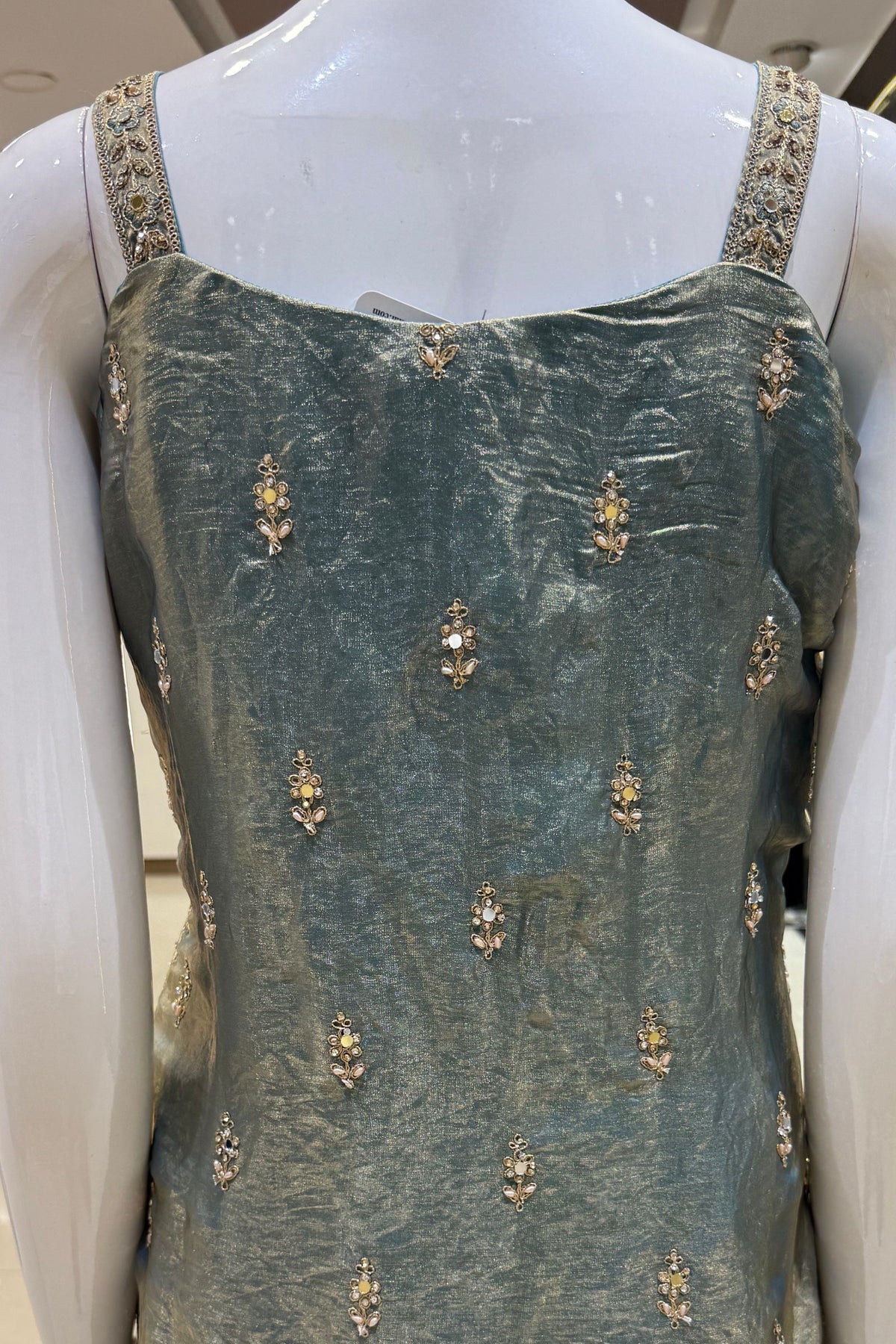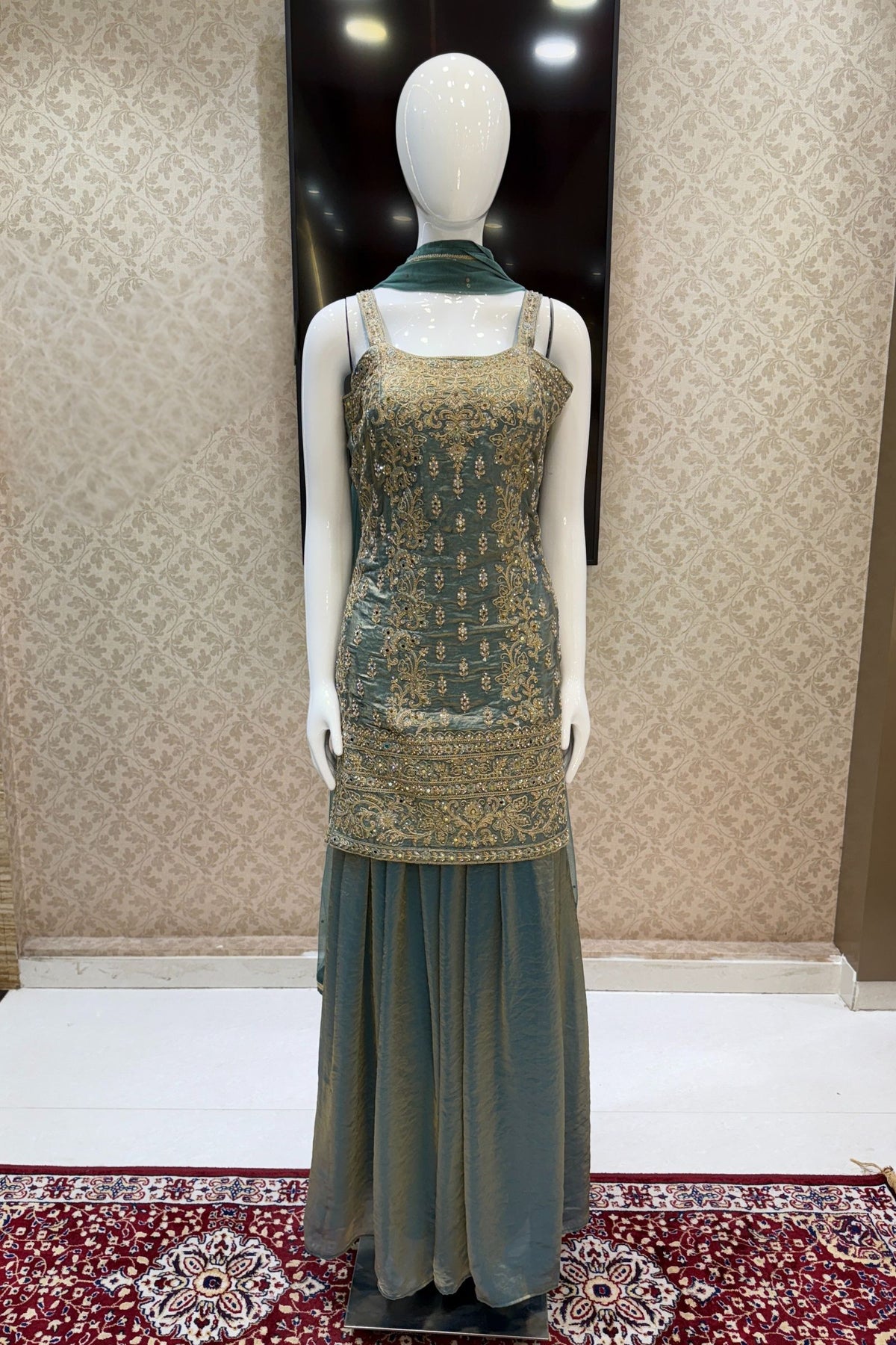 Sea Blue Stone, Beads, Mirror and Zari Thread work Palazzo Salwar Suit