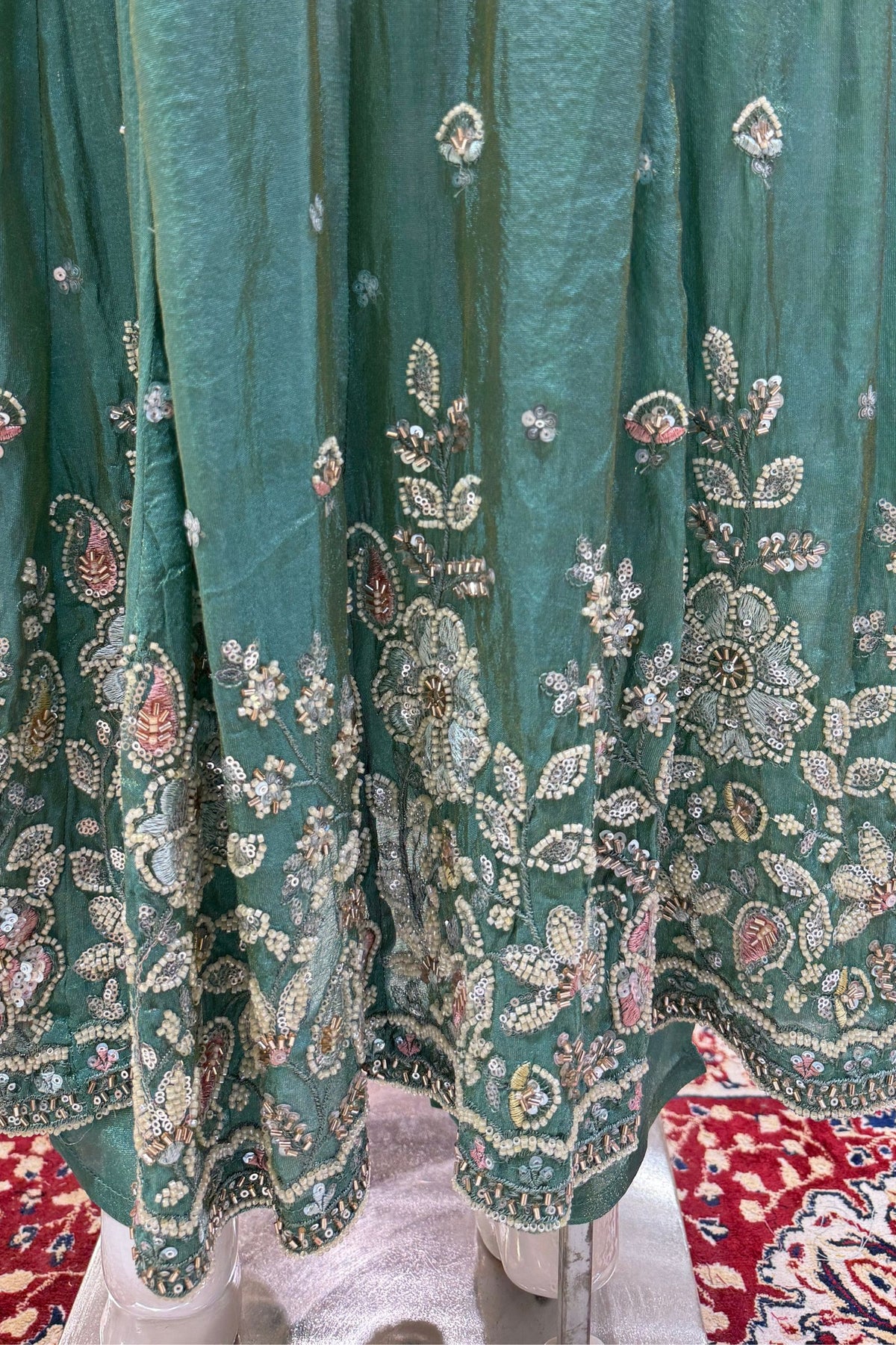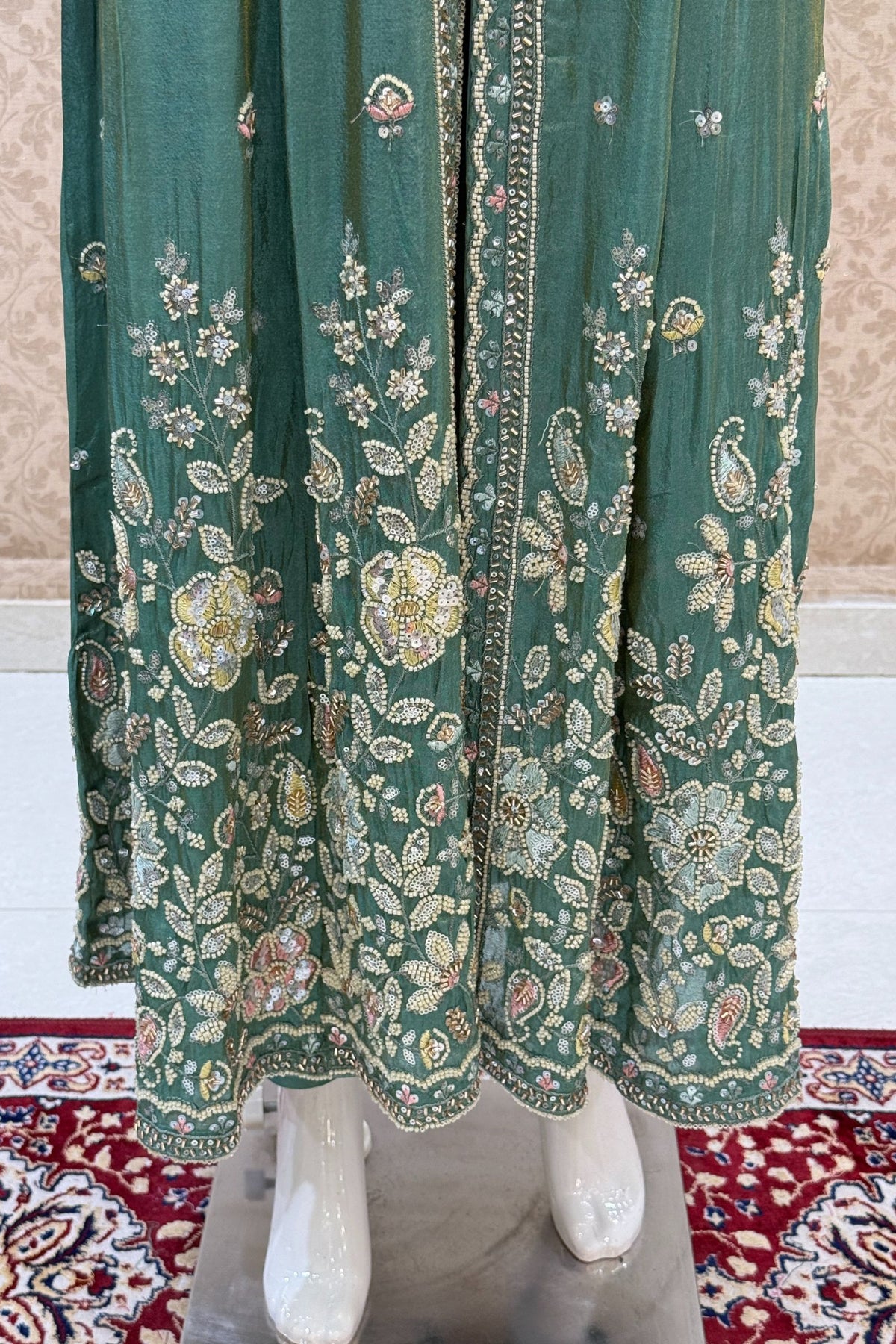Sea Green Beads, Sequins and Thread work Long Top with Straight Pant