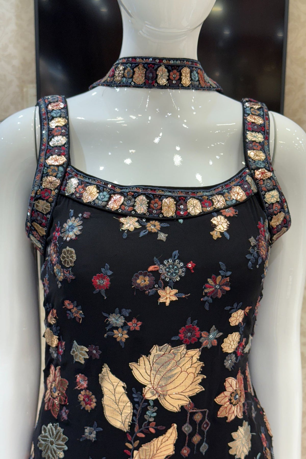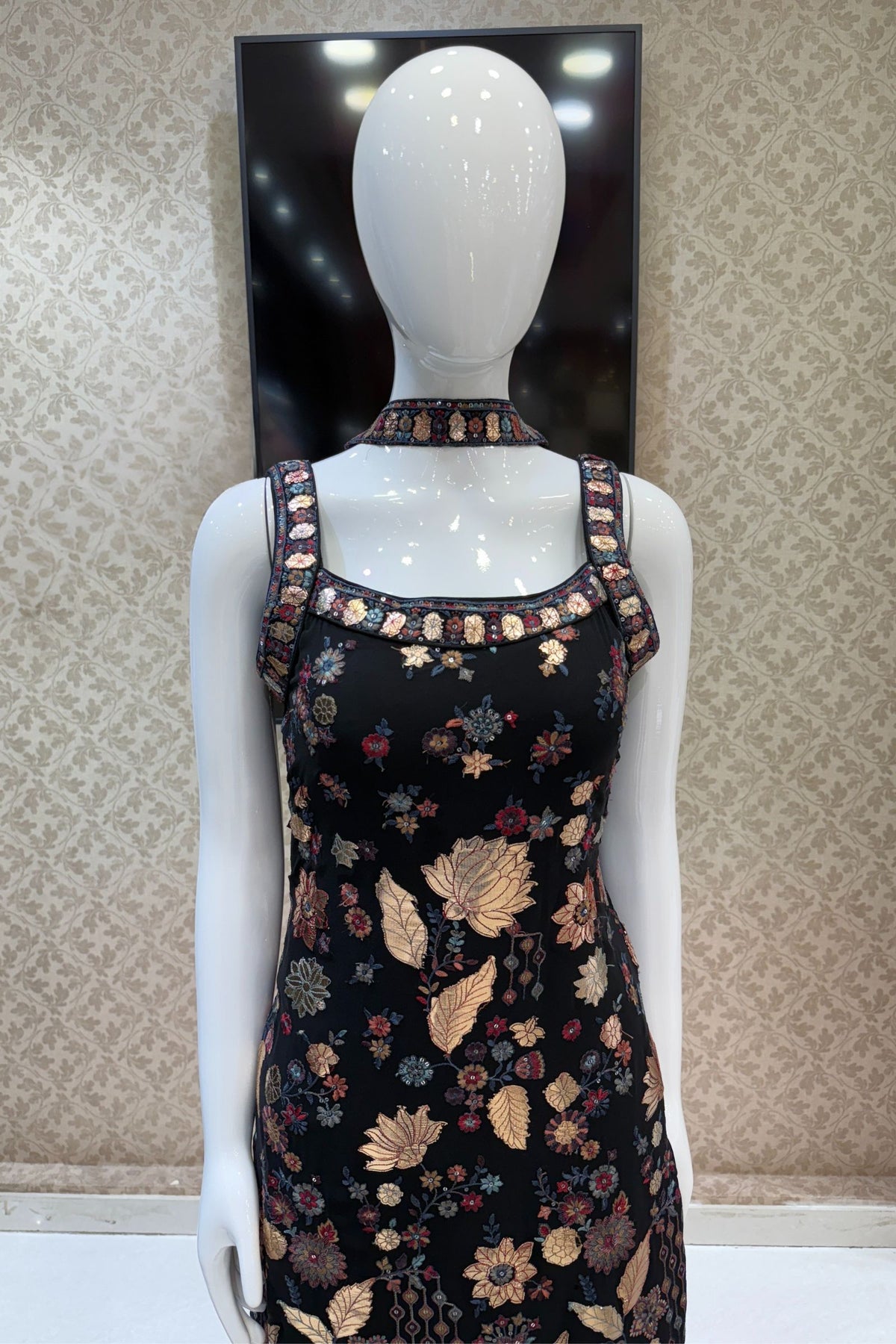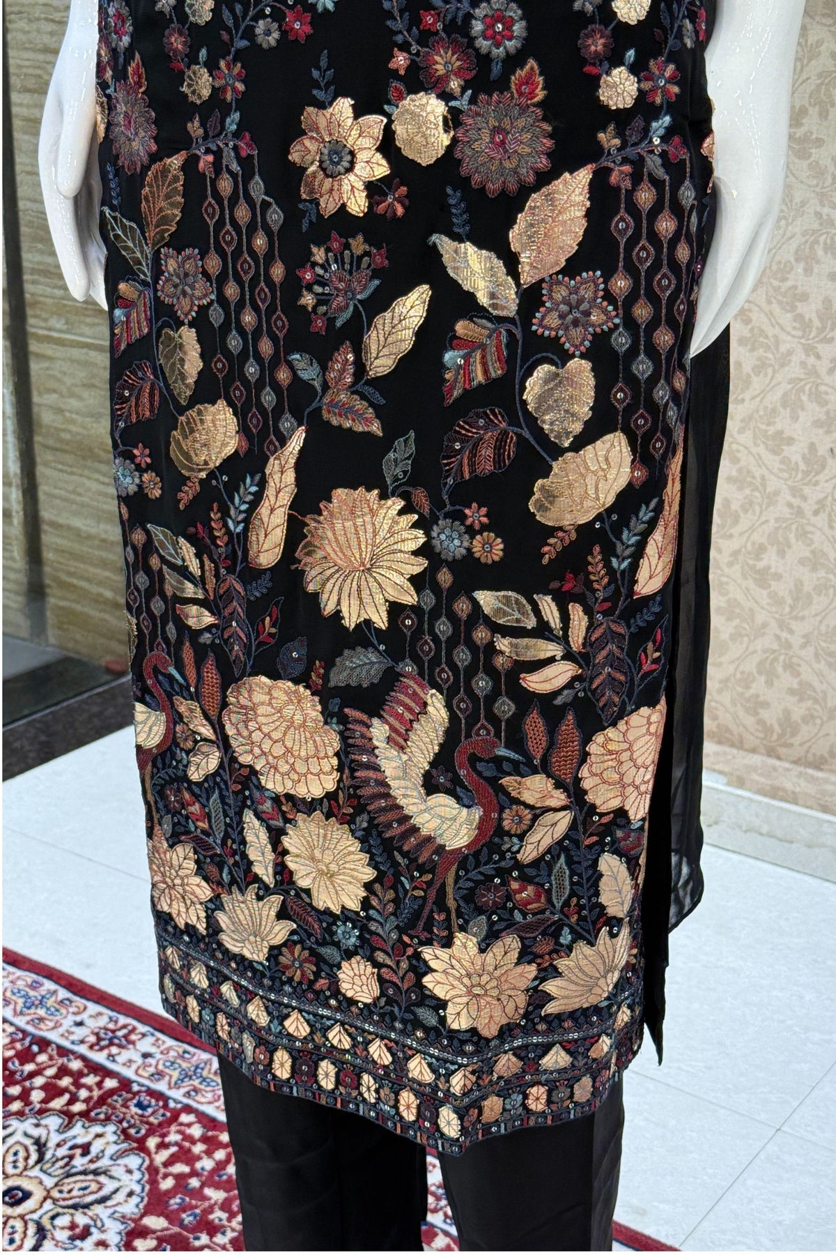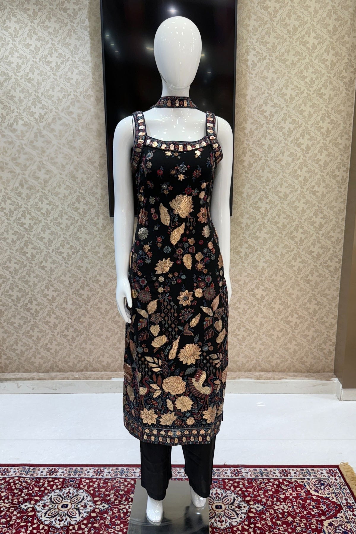 Black Embroidery and Sequins work Straight Cut Salwar Suit