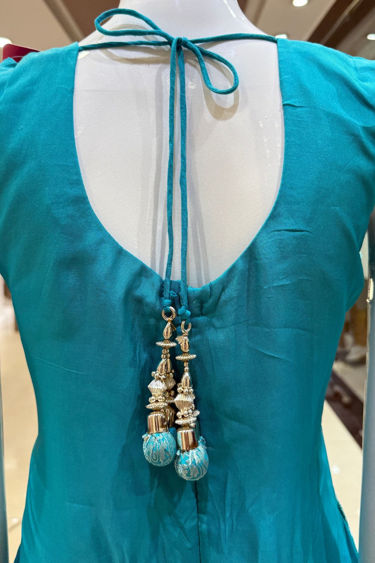 Firozi Blue Jacquard, Beads, Zardozi, Mirror and Sequins work Straight Cut Salwar Suit
