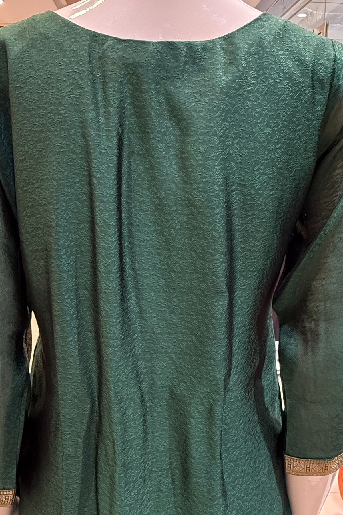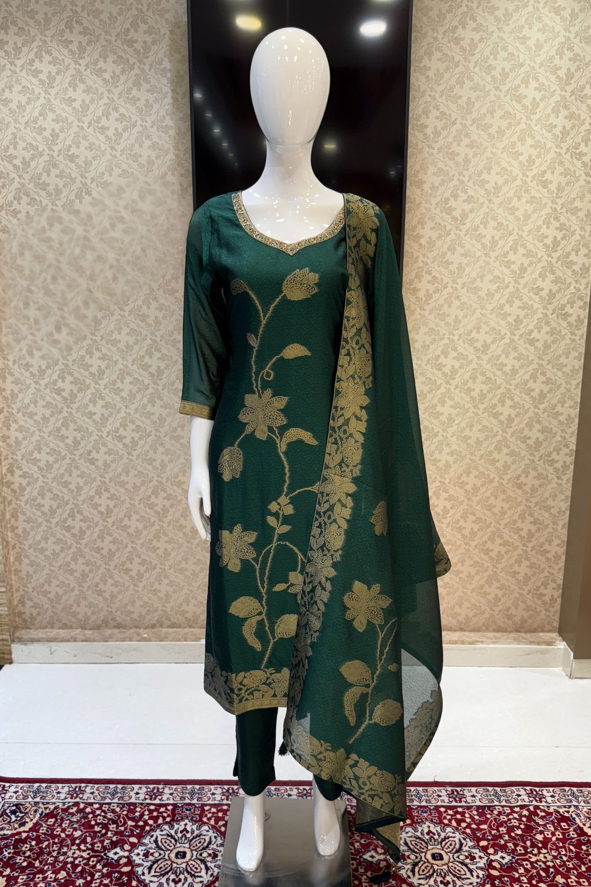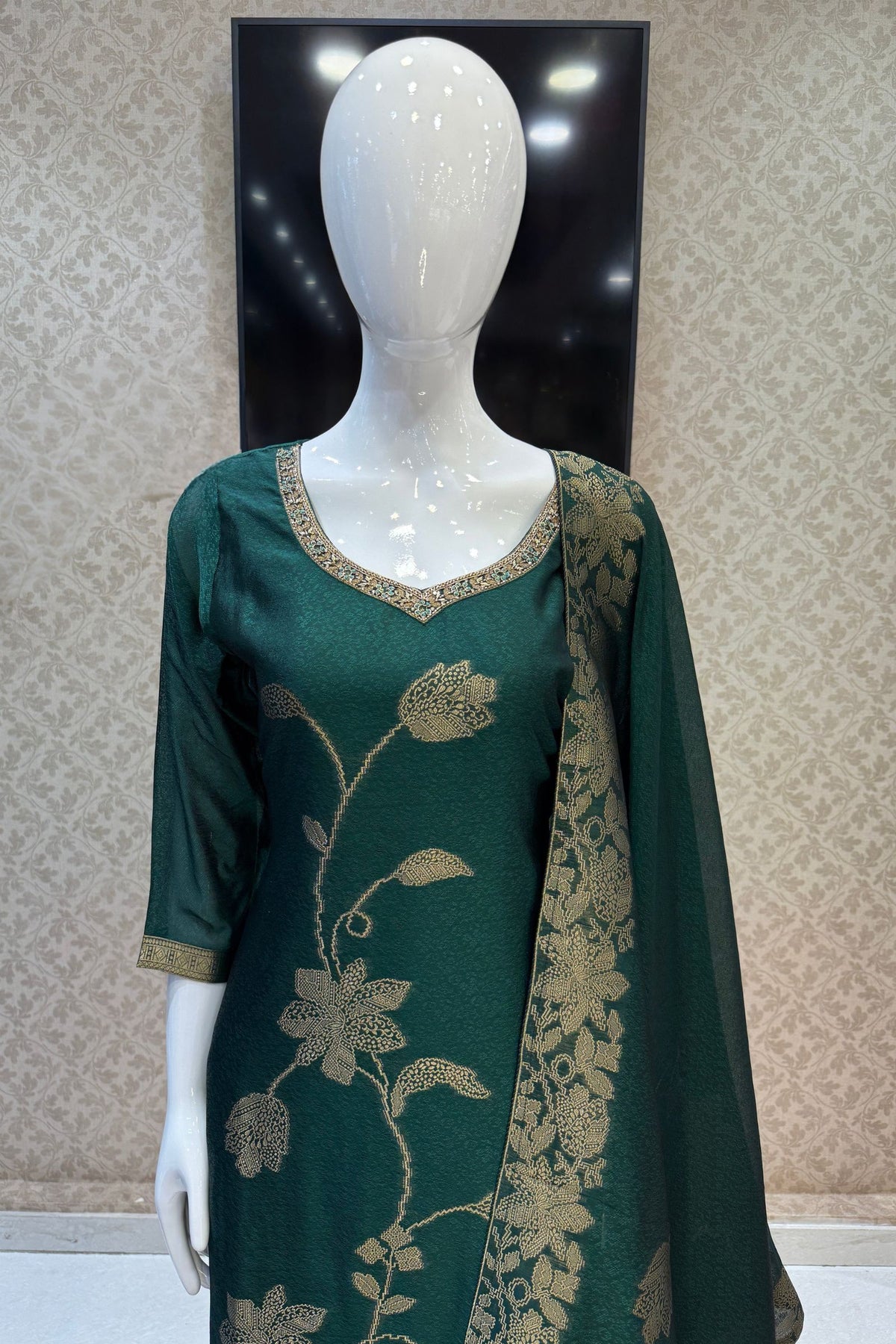 Green Banaras, Stone, Zardozi, SEquins, Beads and Zari work Straight Cut Salwar Suit