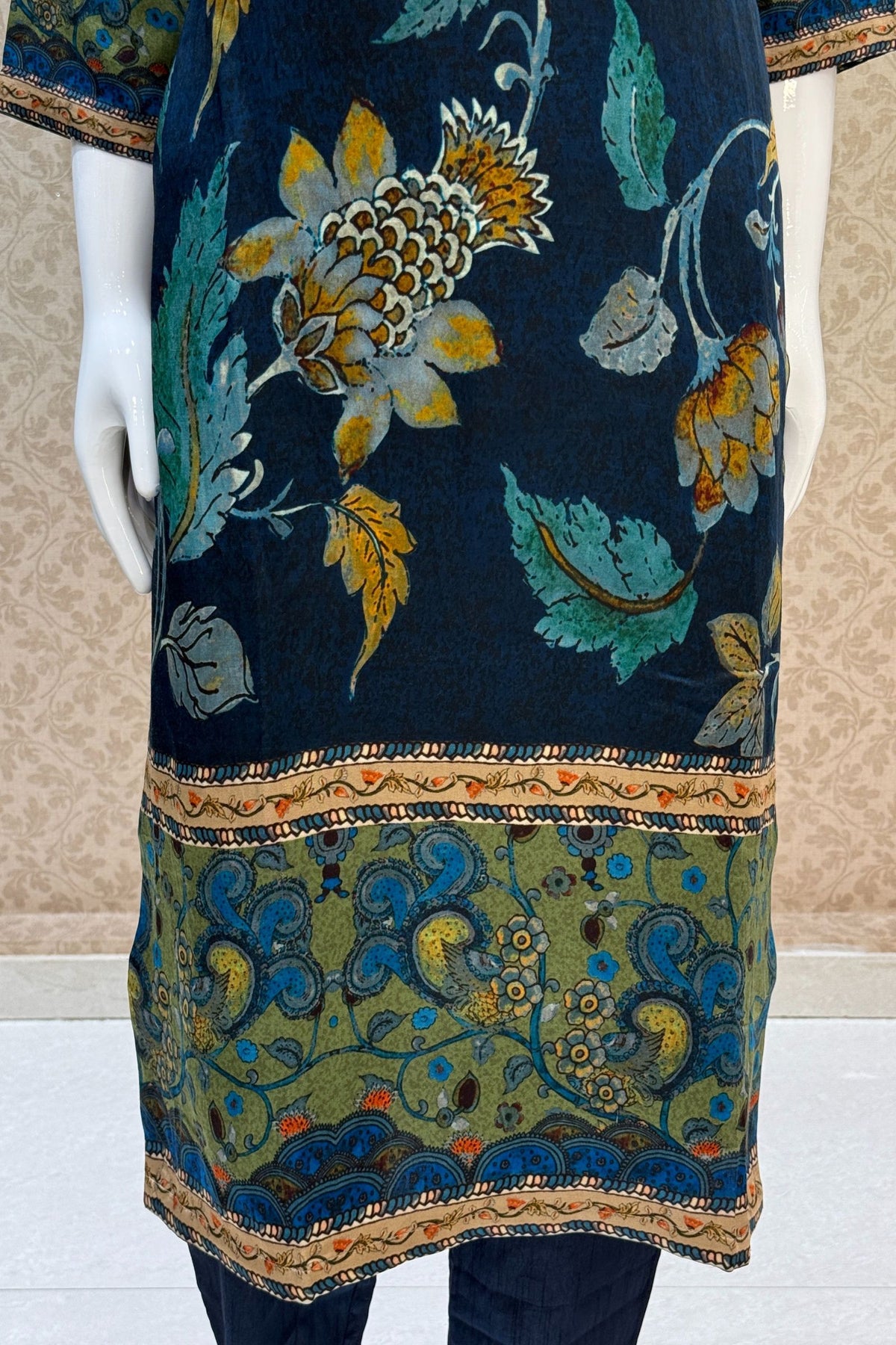 Peacock Blue Sequins, Zardozi and Beads work with Digital Print Straight Cut Salwar Suit
