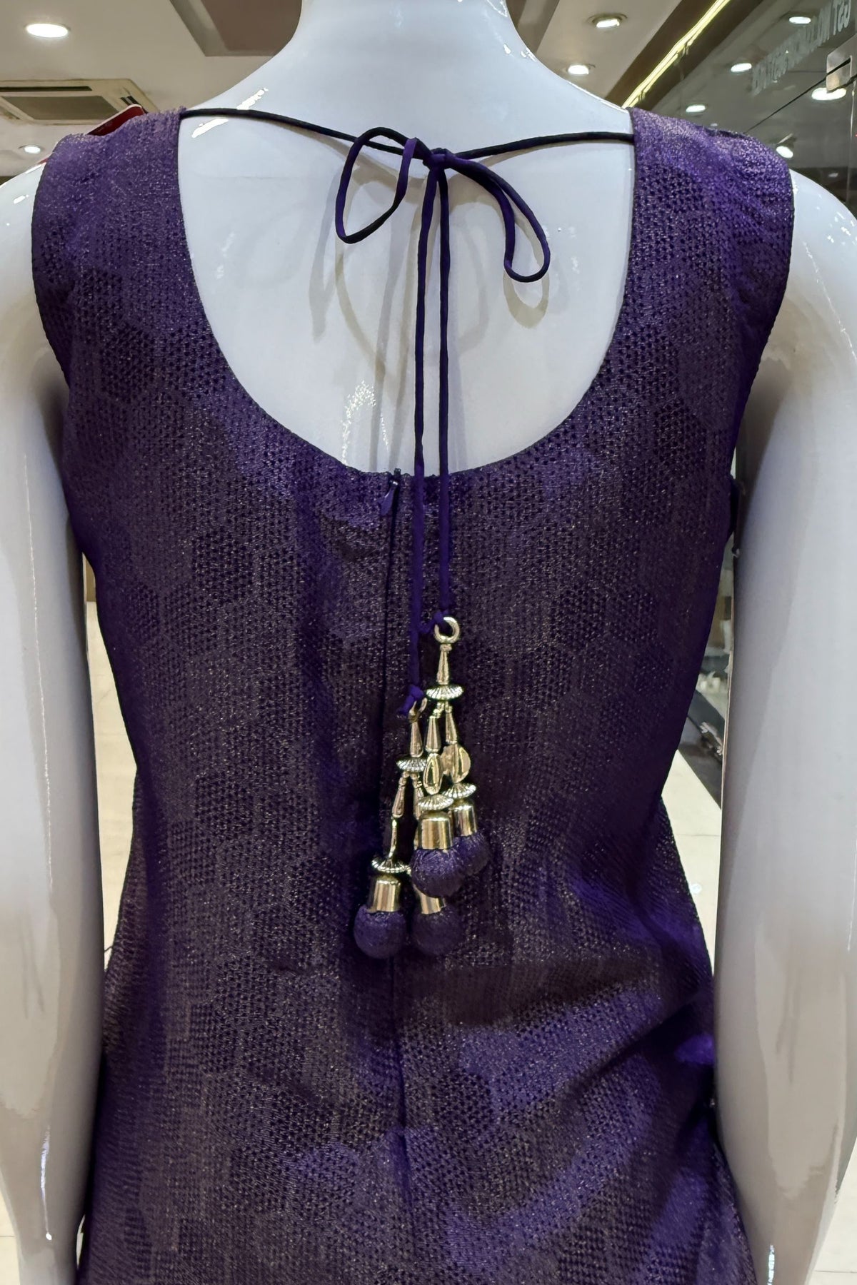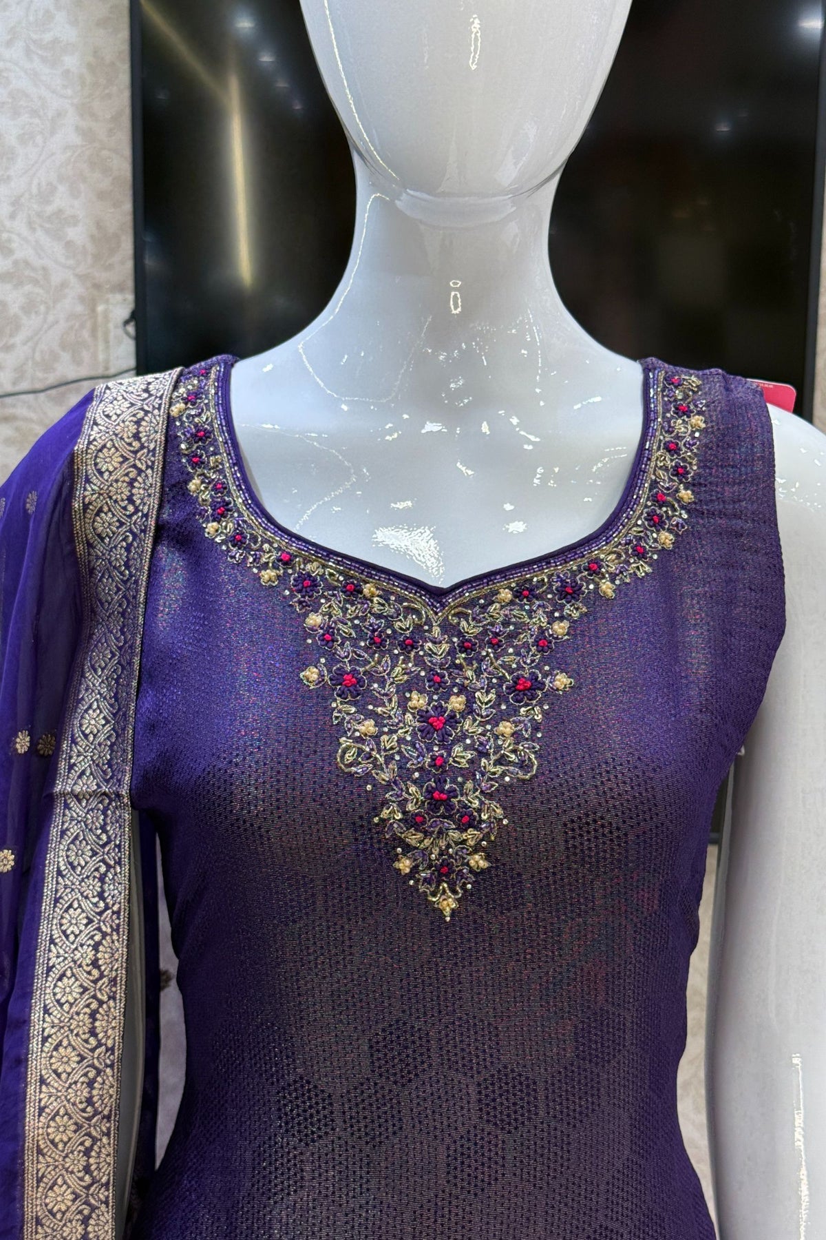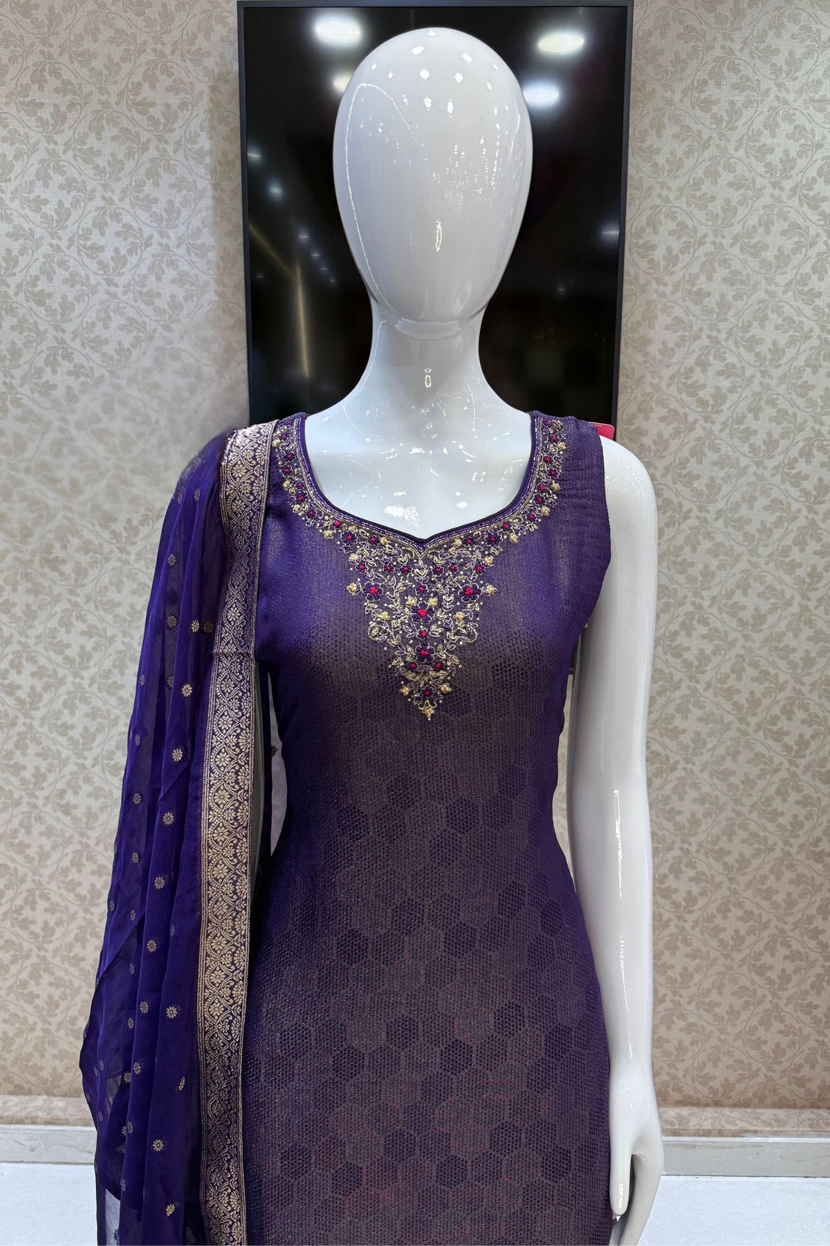 Purple Jacquard, Zari, Zardozi, Beads, Stone and Thread work Straight Cut Salwar Suit