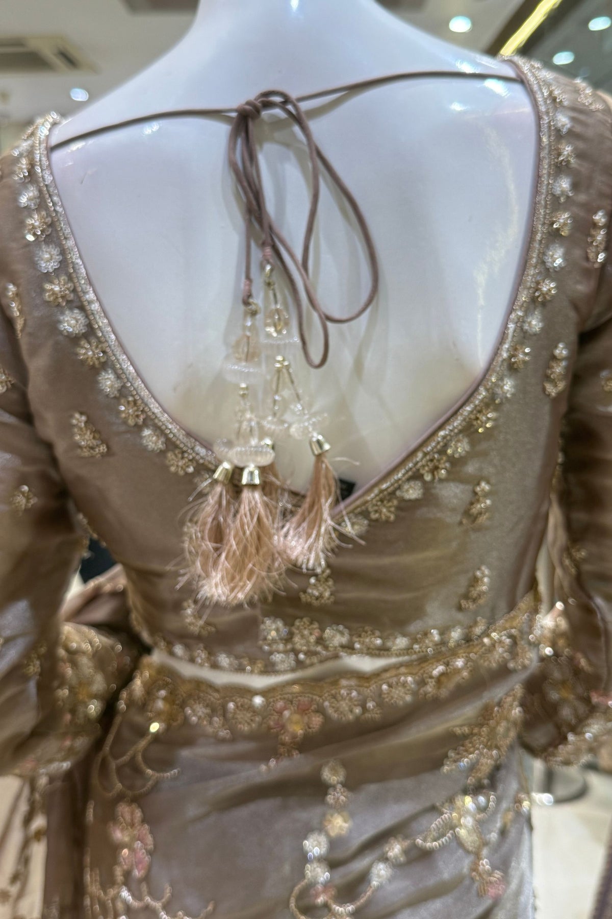 Copper Sequins, Beads, Zari and Pearls work Saree