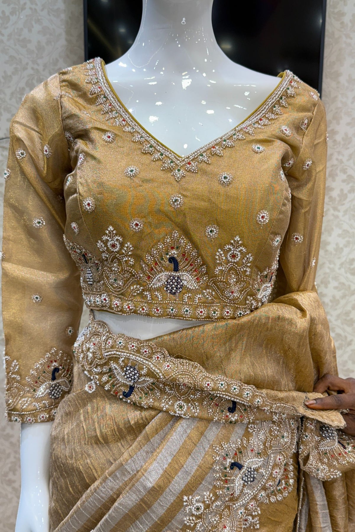 | Fabric | Saree - Crush Tissue Silk and Blouse - Tissue Silk |