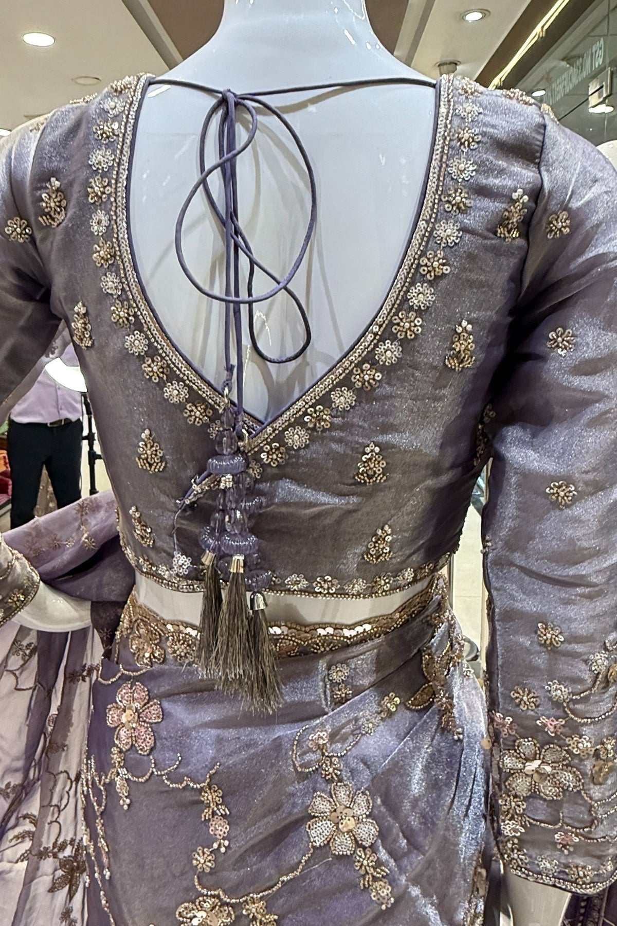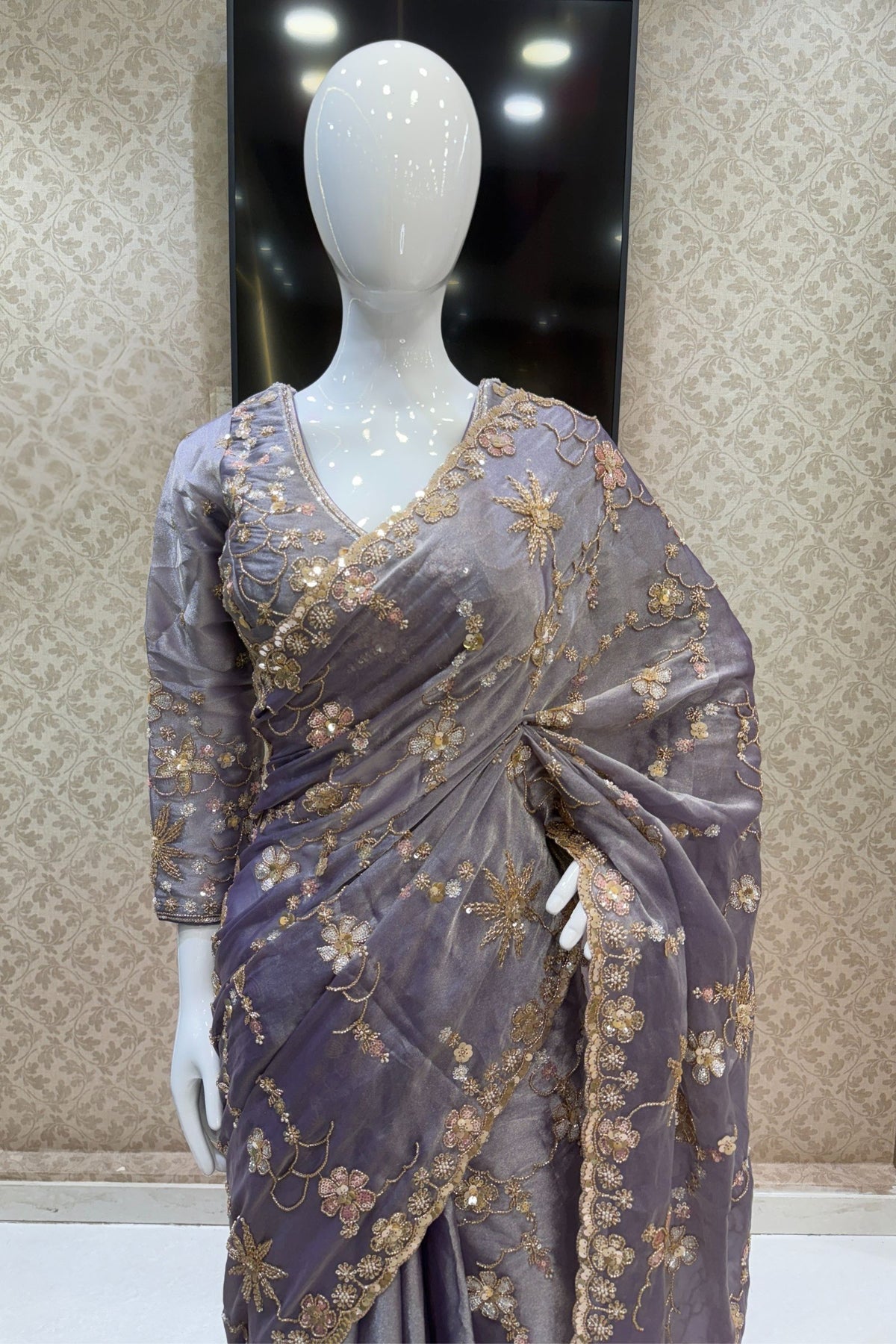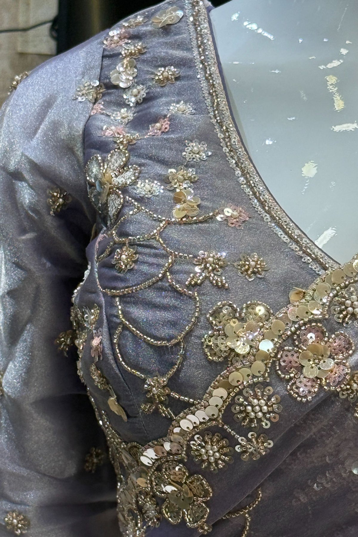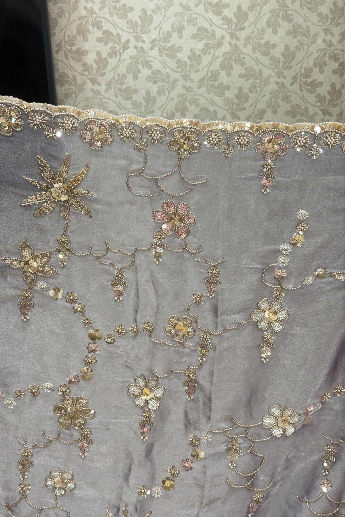 Light Purple Sequins, Beads, Zari and Pearls work Saree