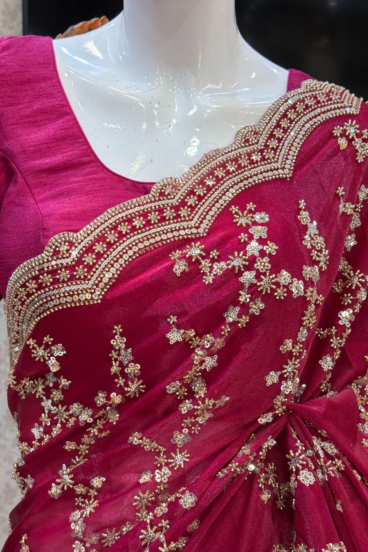 Magenta Beads, Zari and Sequins work Saree