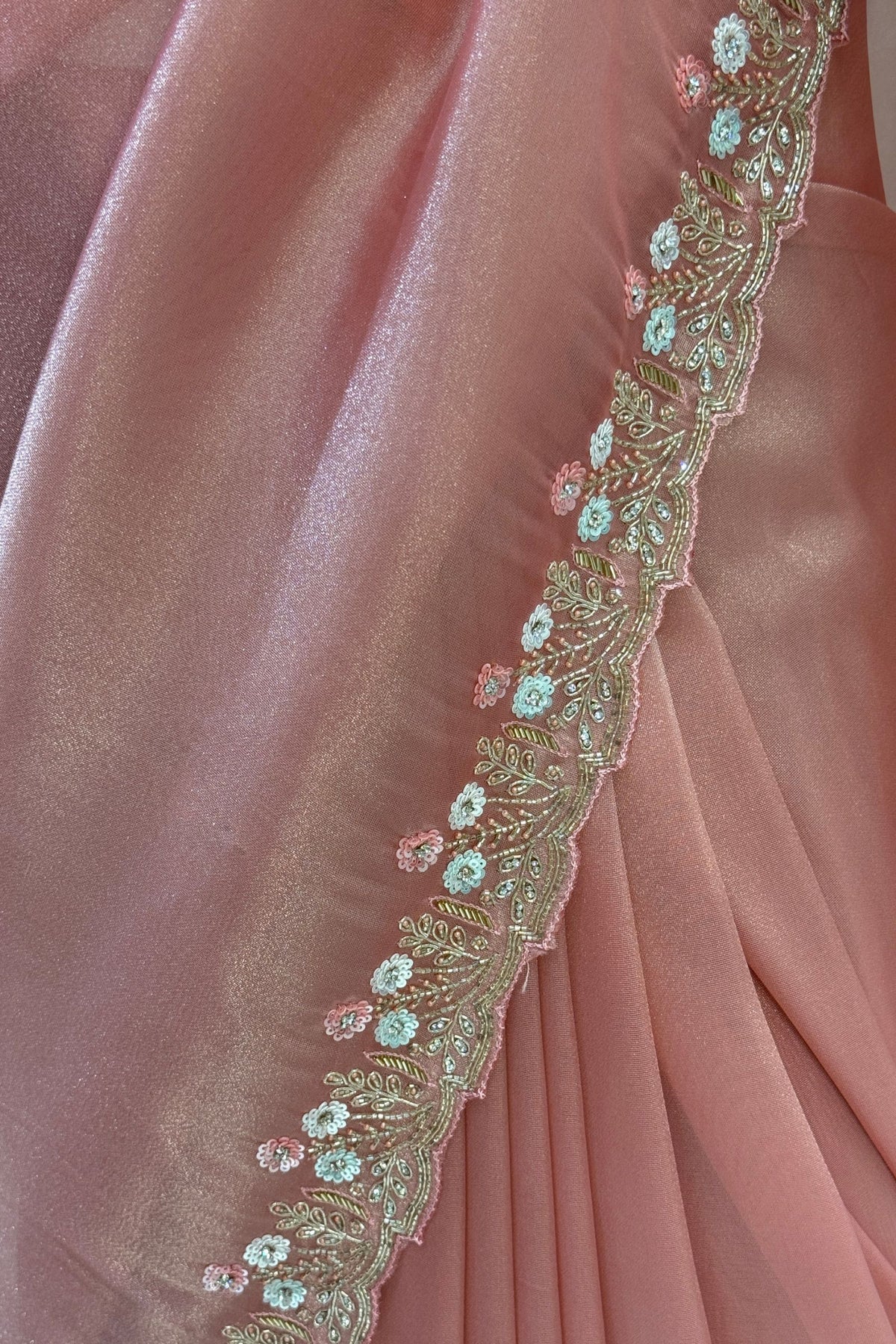 Peach Stone, Sequins, Zardozi and Beads work Saree