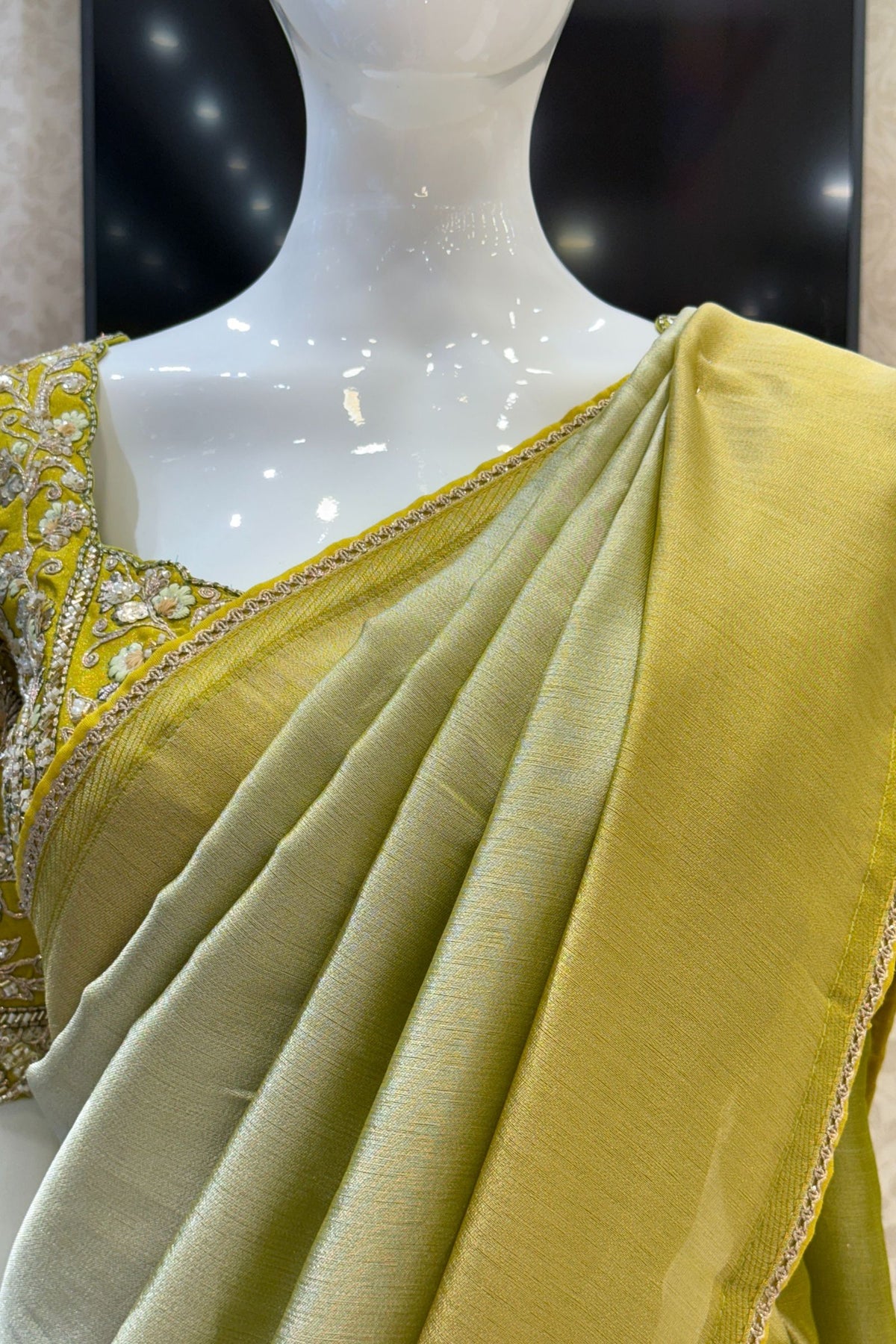 Pista Green Saree with Beads, Sequins, Zardozi and Zari work Readymade Blouse