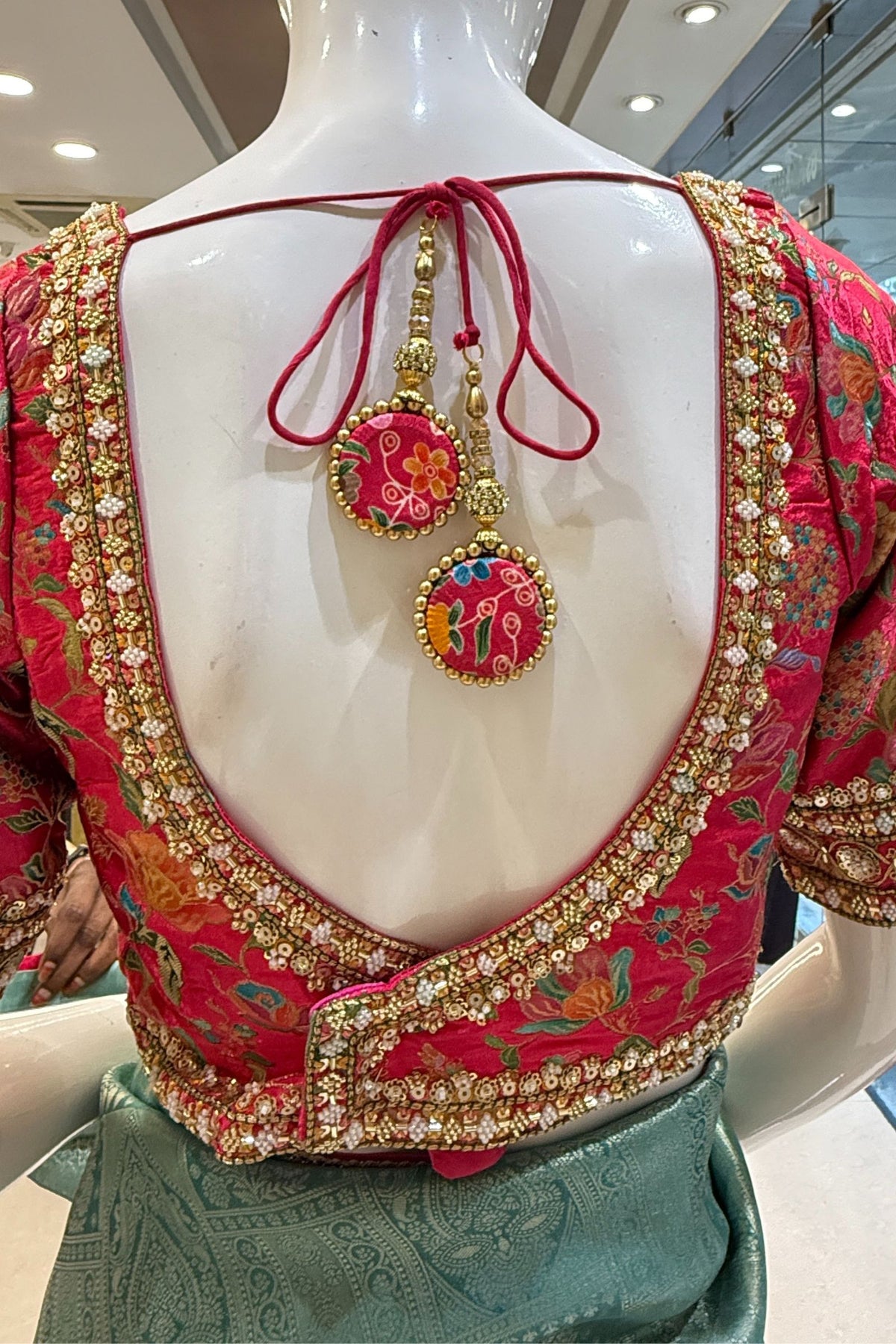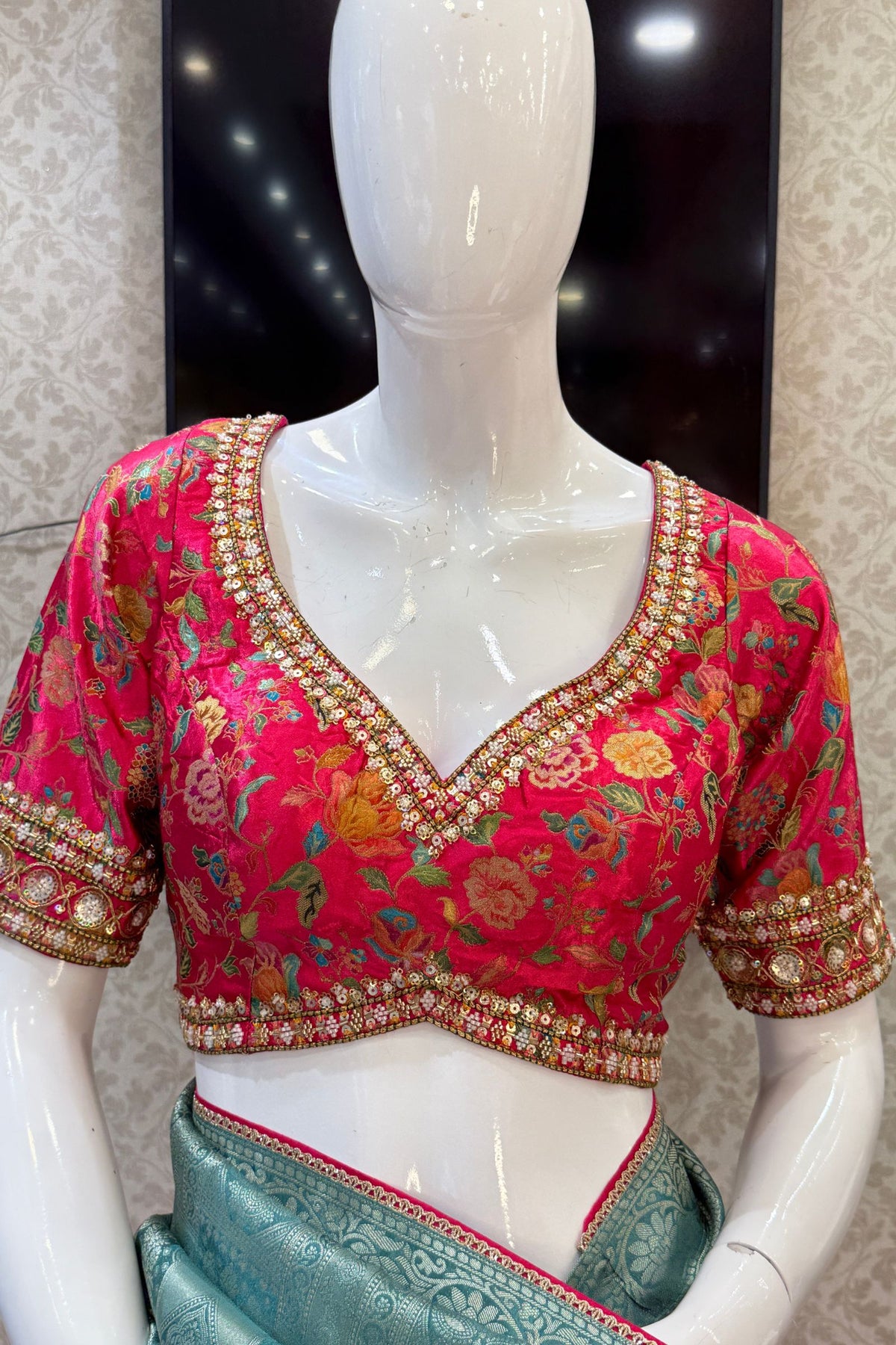 | Colour | Sea Green and Rani Pink Blouse |