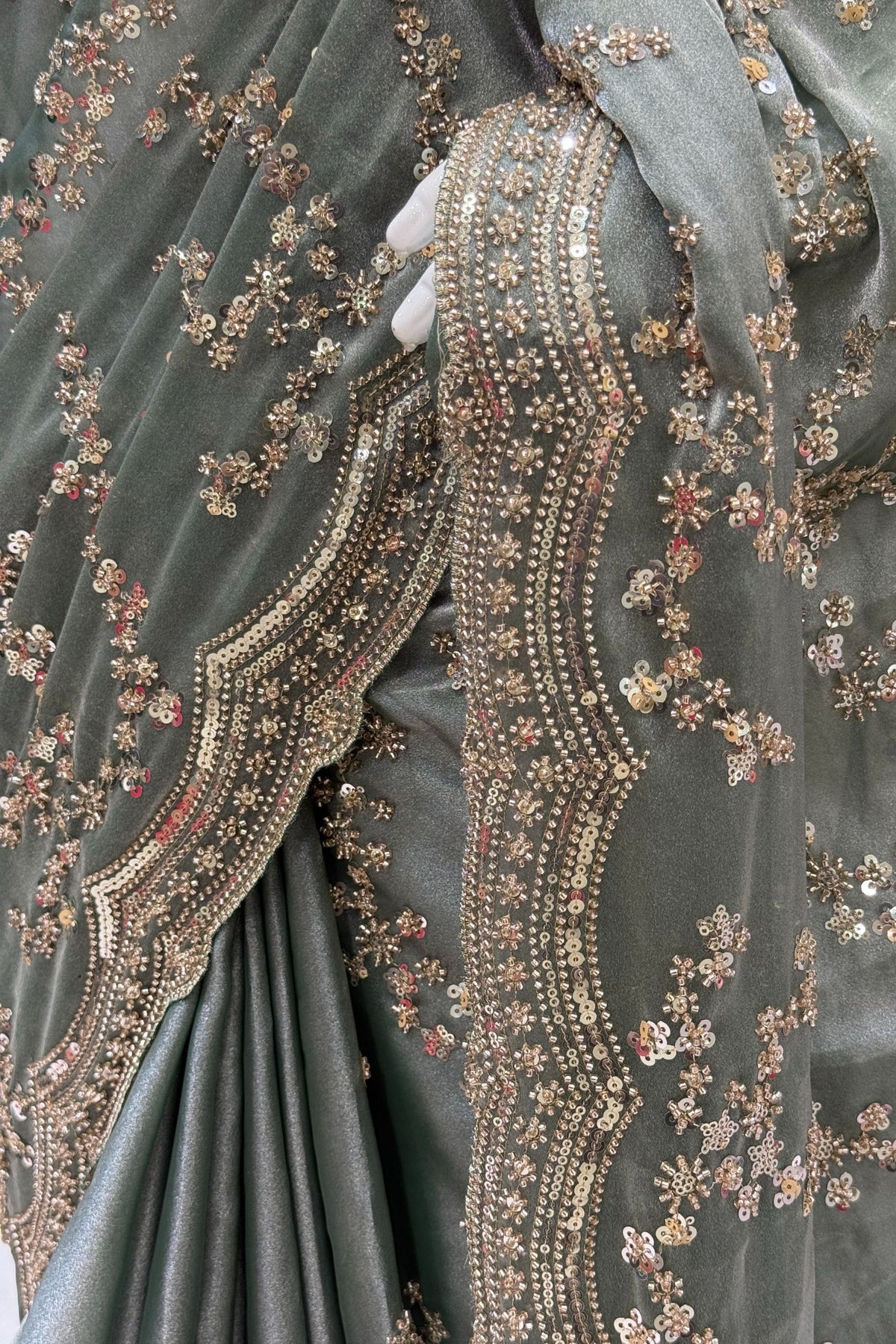Sea Green Beads, Zari and Sequins work Saree