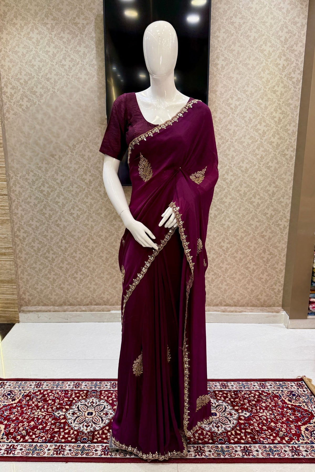 Wine Mirror, Pearl, Zardozi, Stone and Beads work Saree