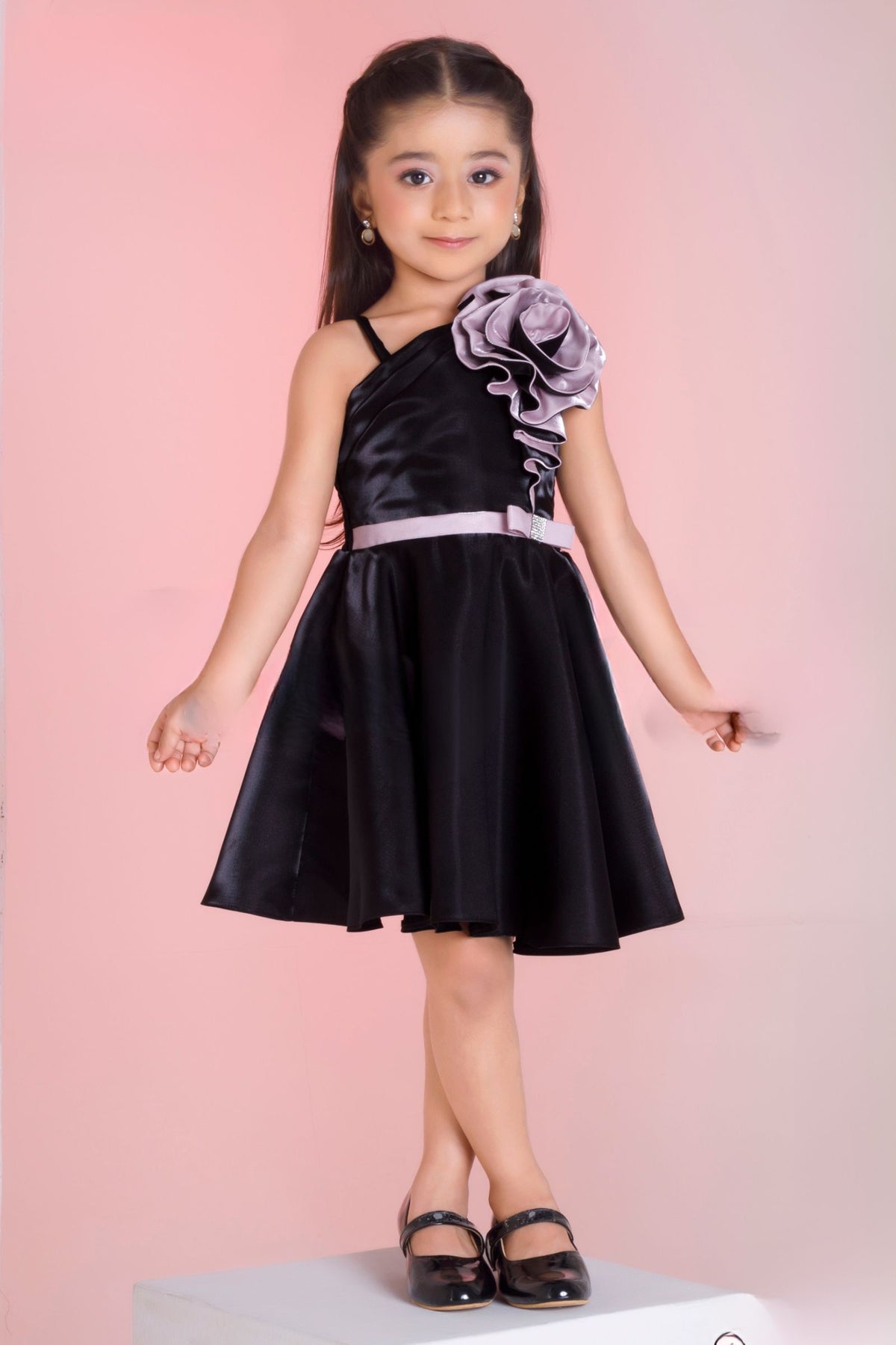 Black Short Partywear Frock for Girls