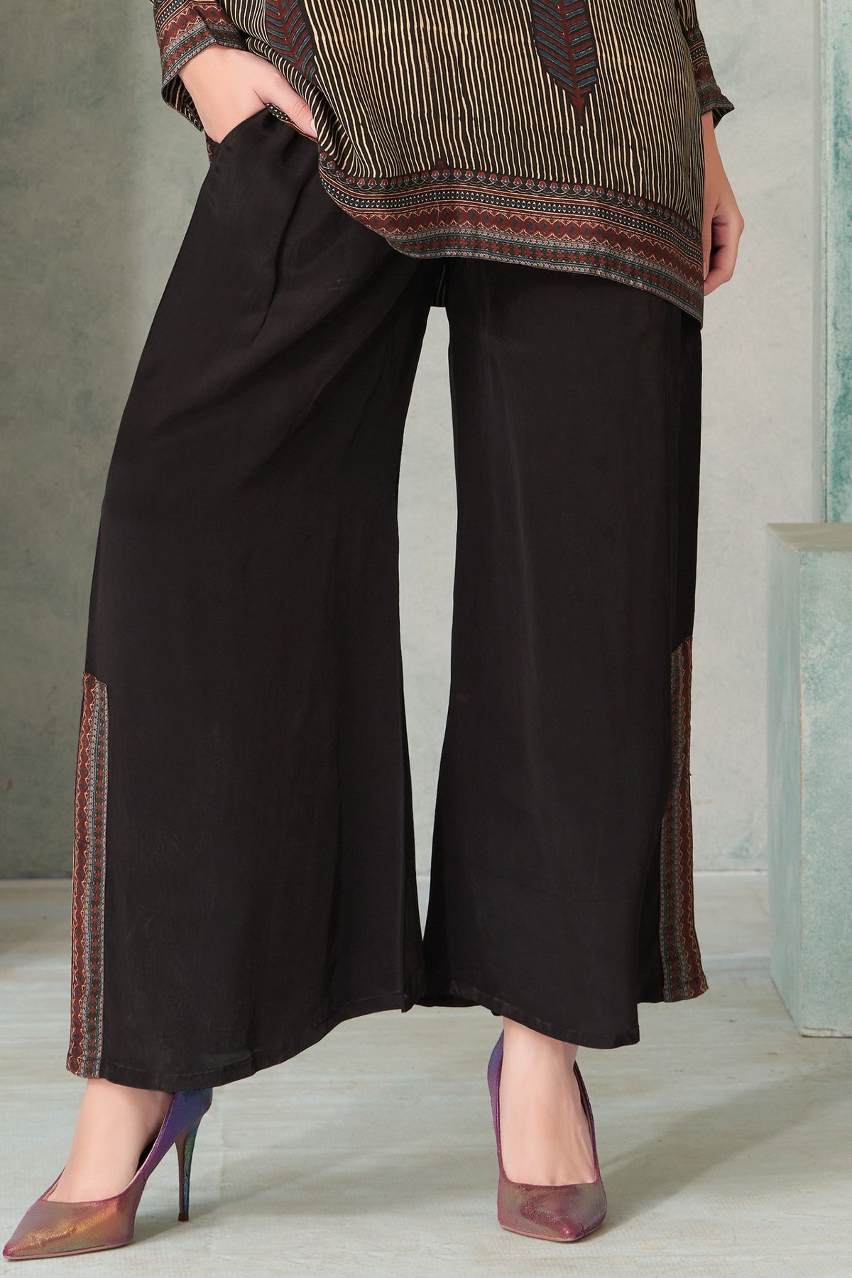 Black with Digital Print Palazzo Salwar Suit