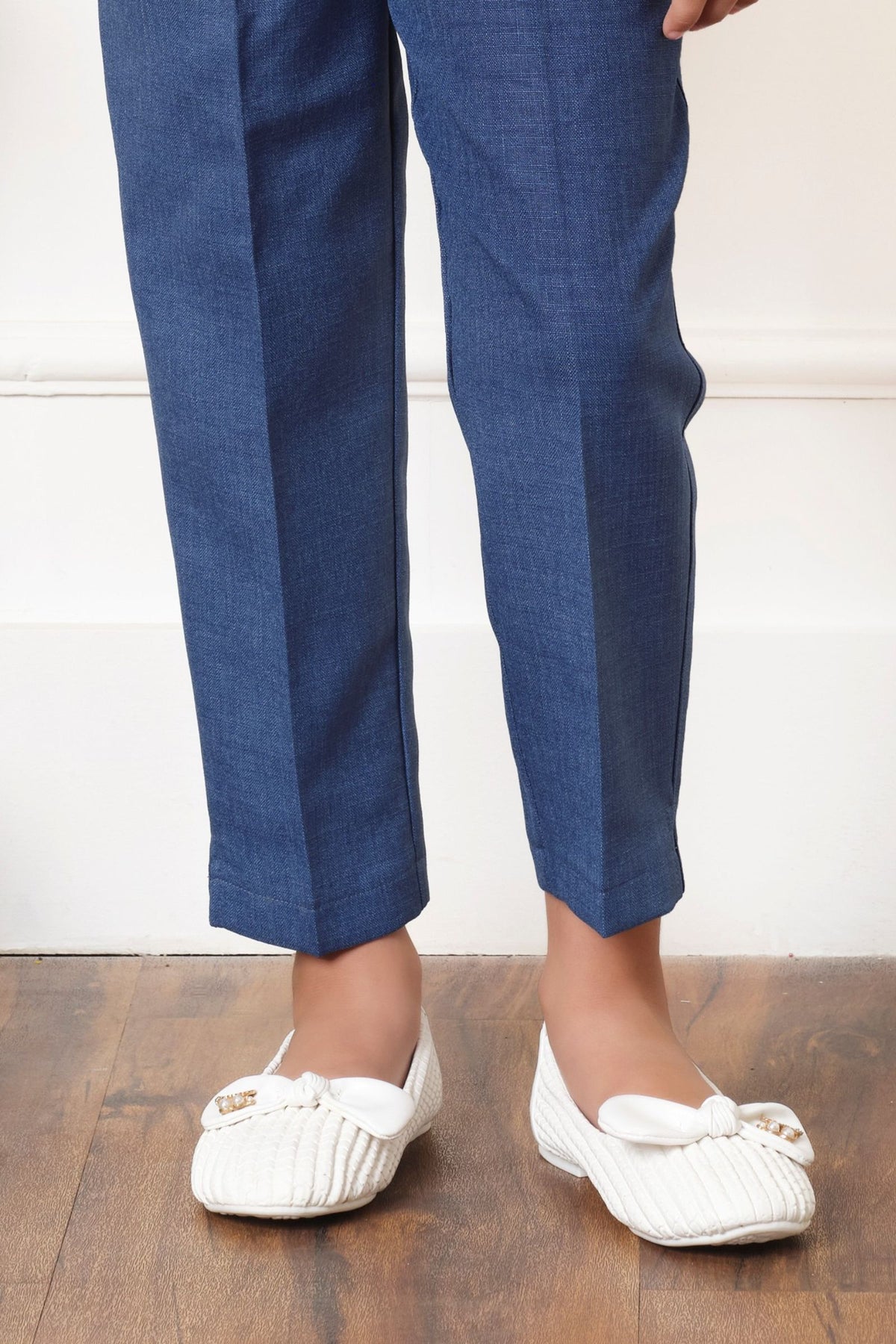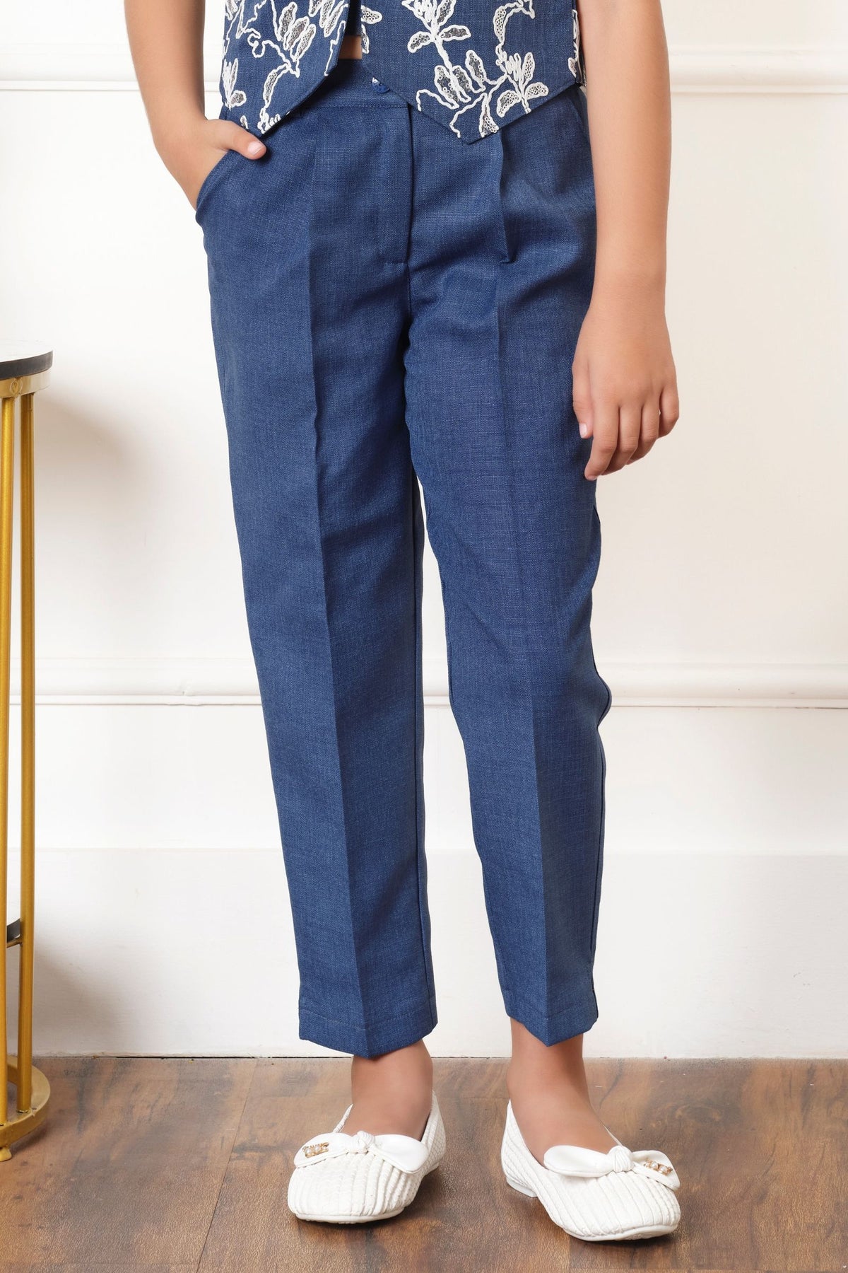 Dark Blue Thread and Sequins work Overcoat Styled Co-ord Set for Girls