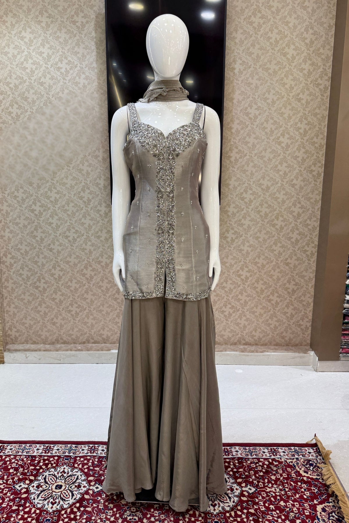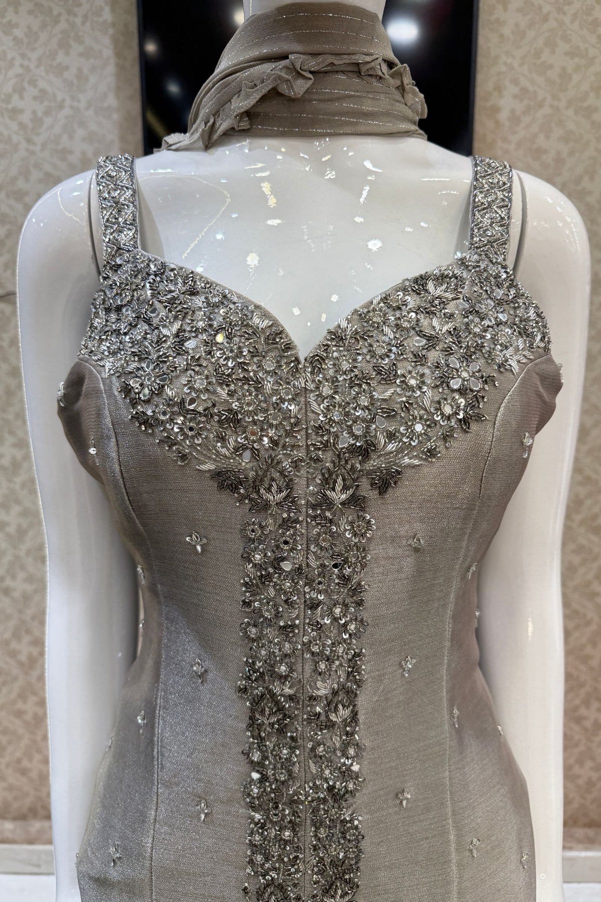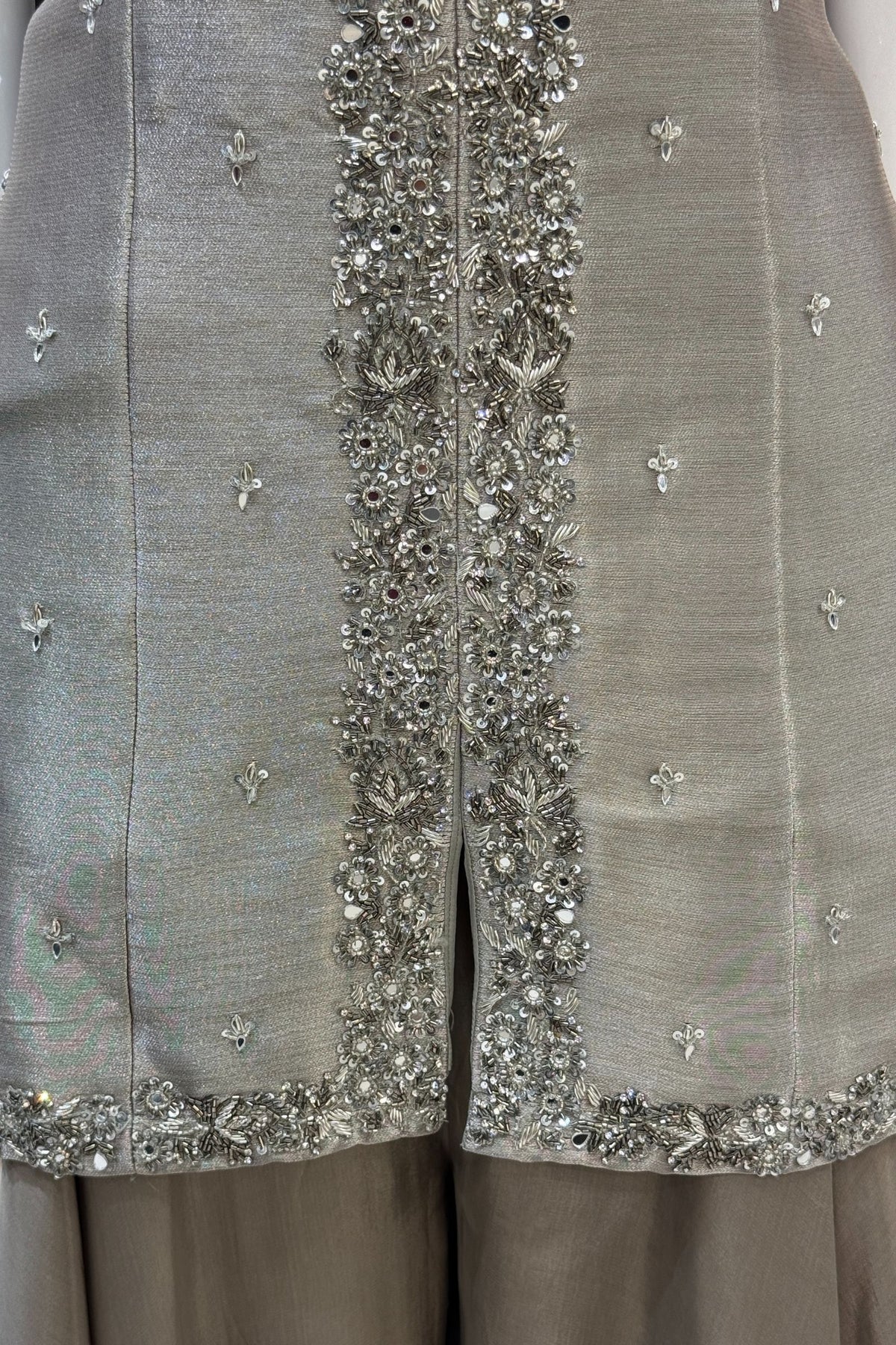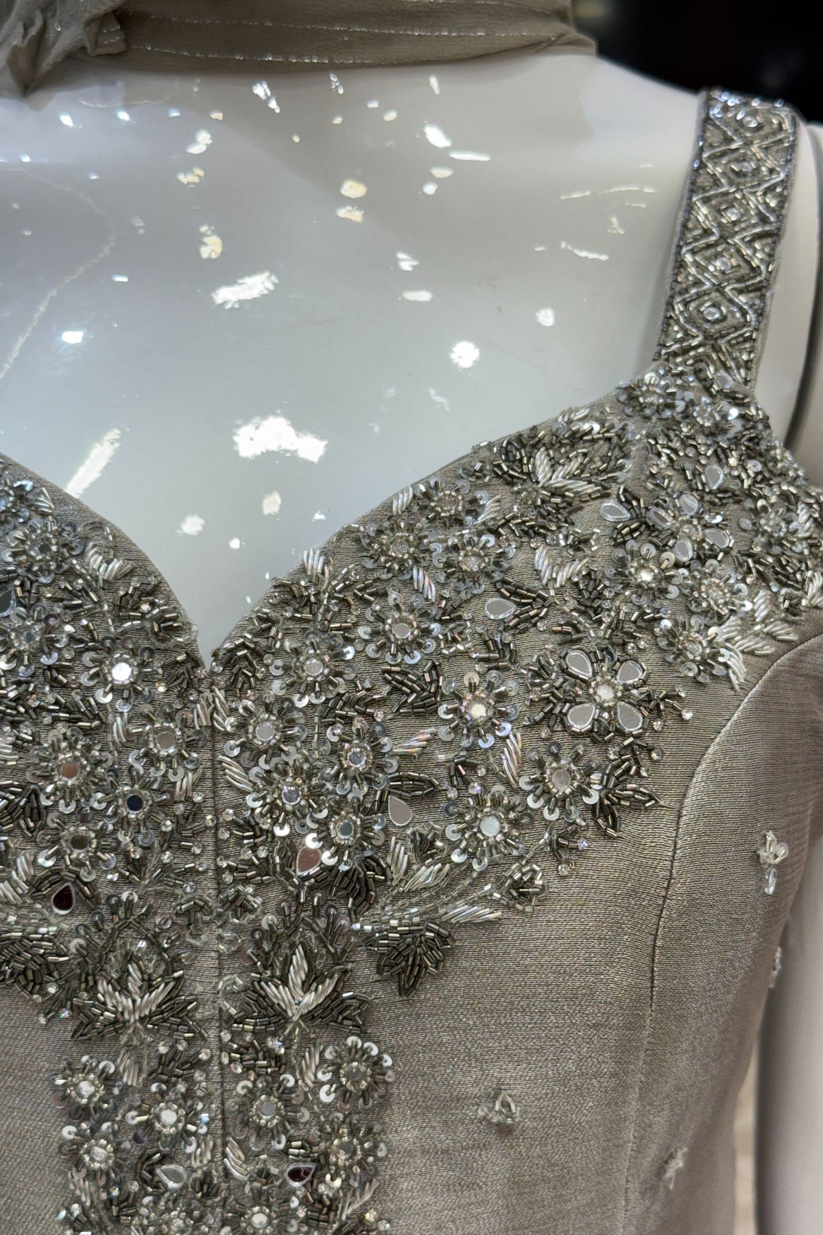 Grey Beads, Zardozi, Stone and Mirror work Palazzo Salwar Suit