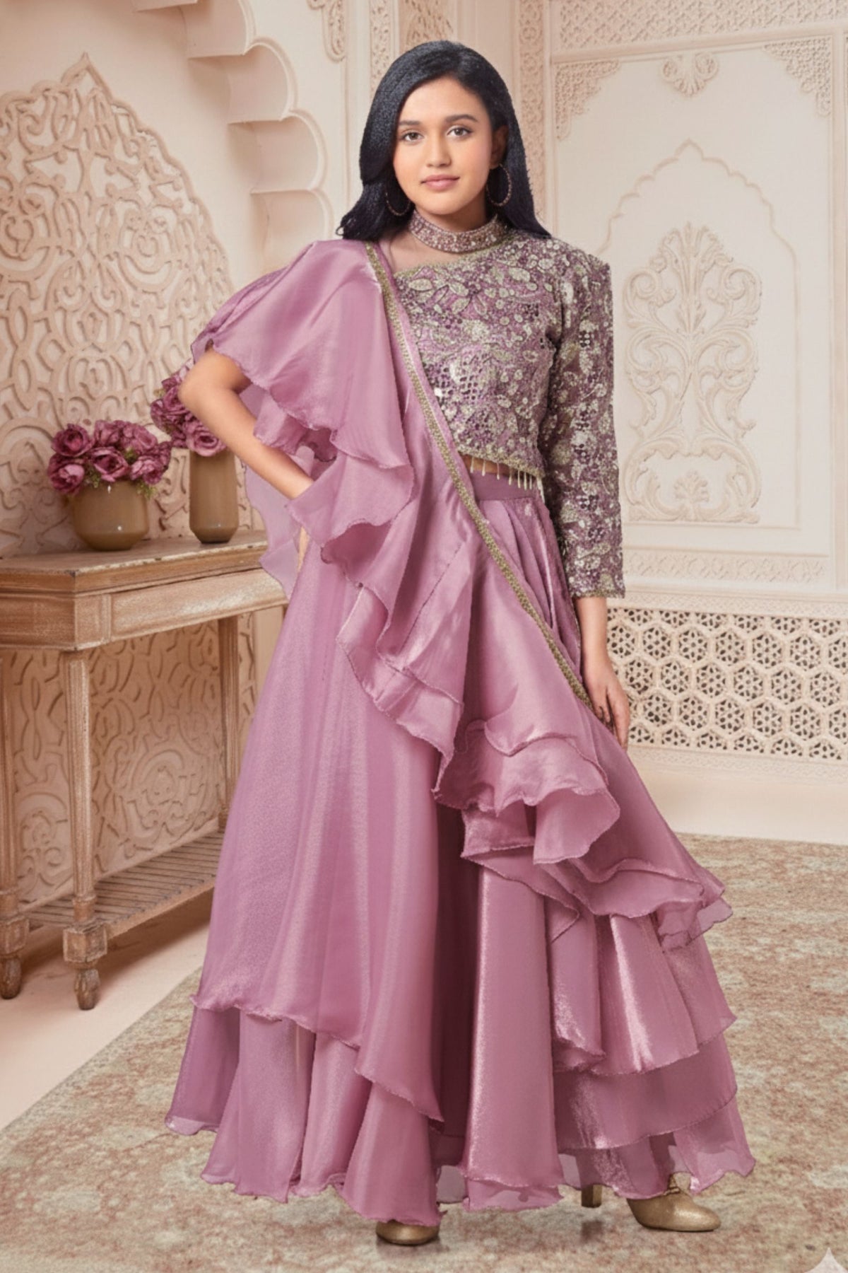 Lavender Embroidery, Sequins, Beads, Mirror, Zari and Stone work Lehenga Choli for Girls