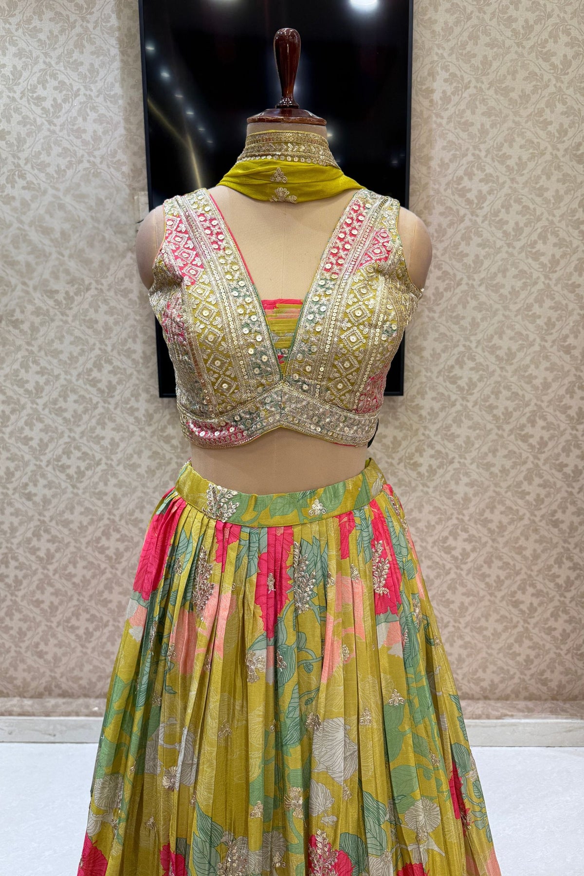 Liril Green Sequins and Zari work with Multicolor Digital Print Crop Top Lehenga
