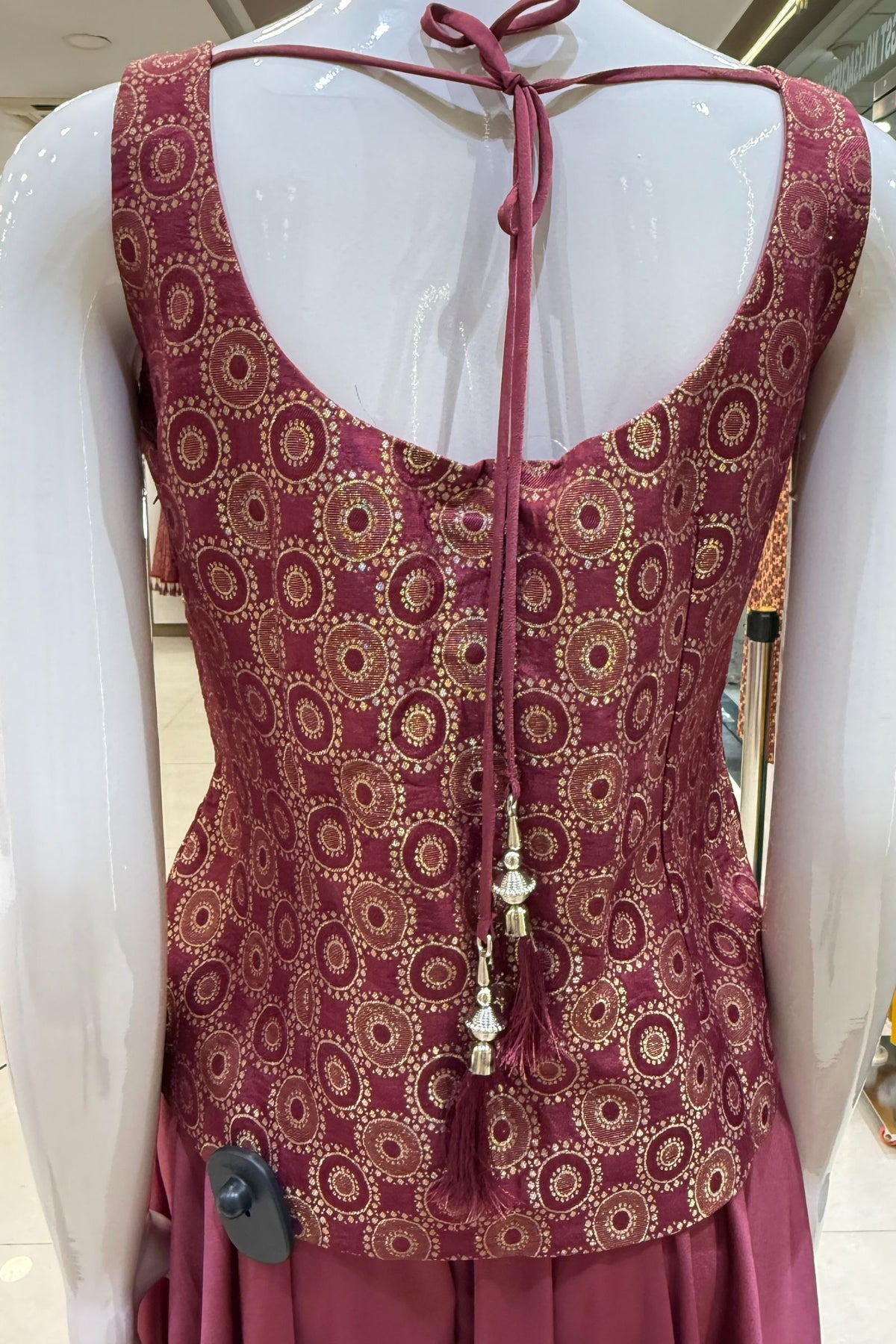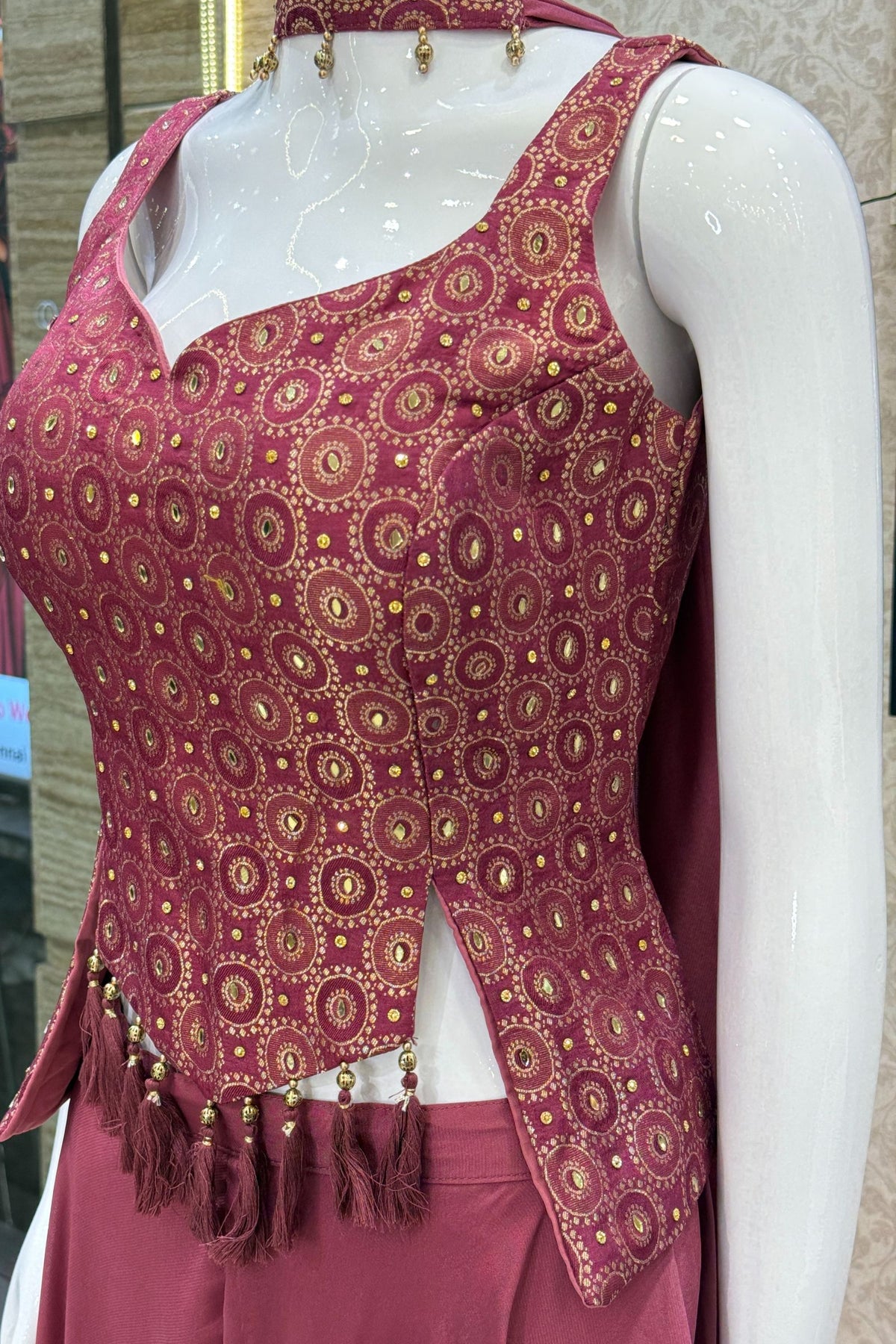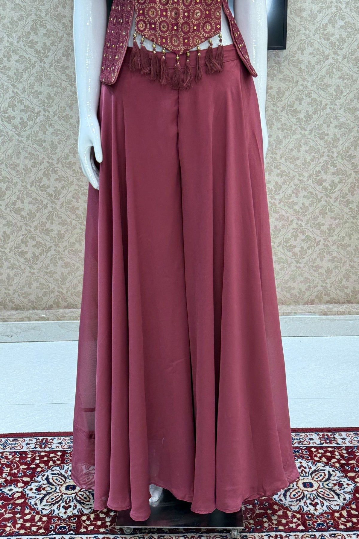 Magenta Stone, Mirror and Brocade work Palazzo Suit Set