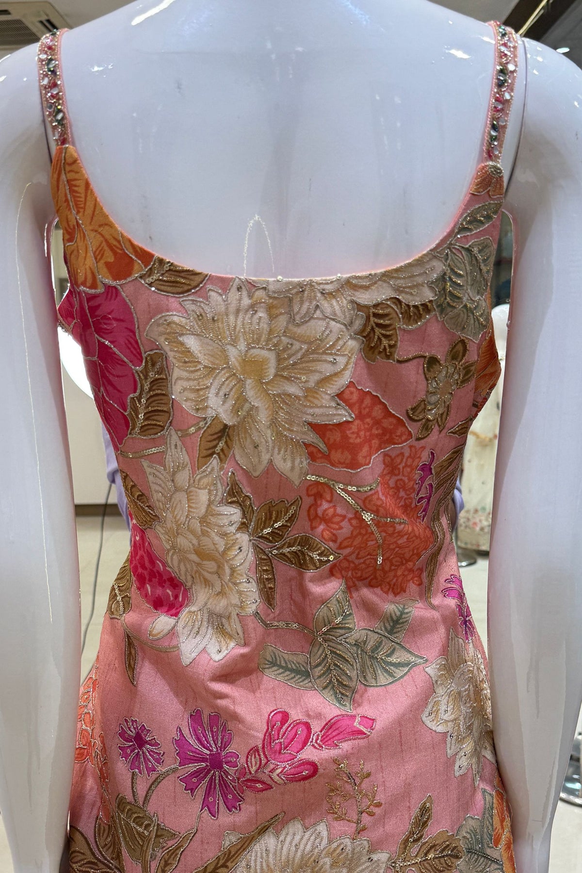 Peach Mirror, Sequins, Zari and Beads work with Floral Print Palazzo Salwar Suit