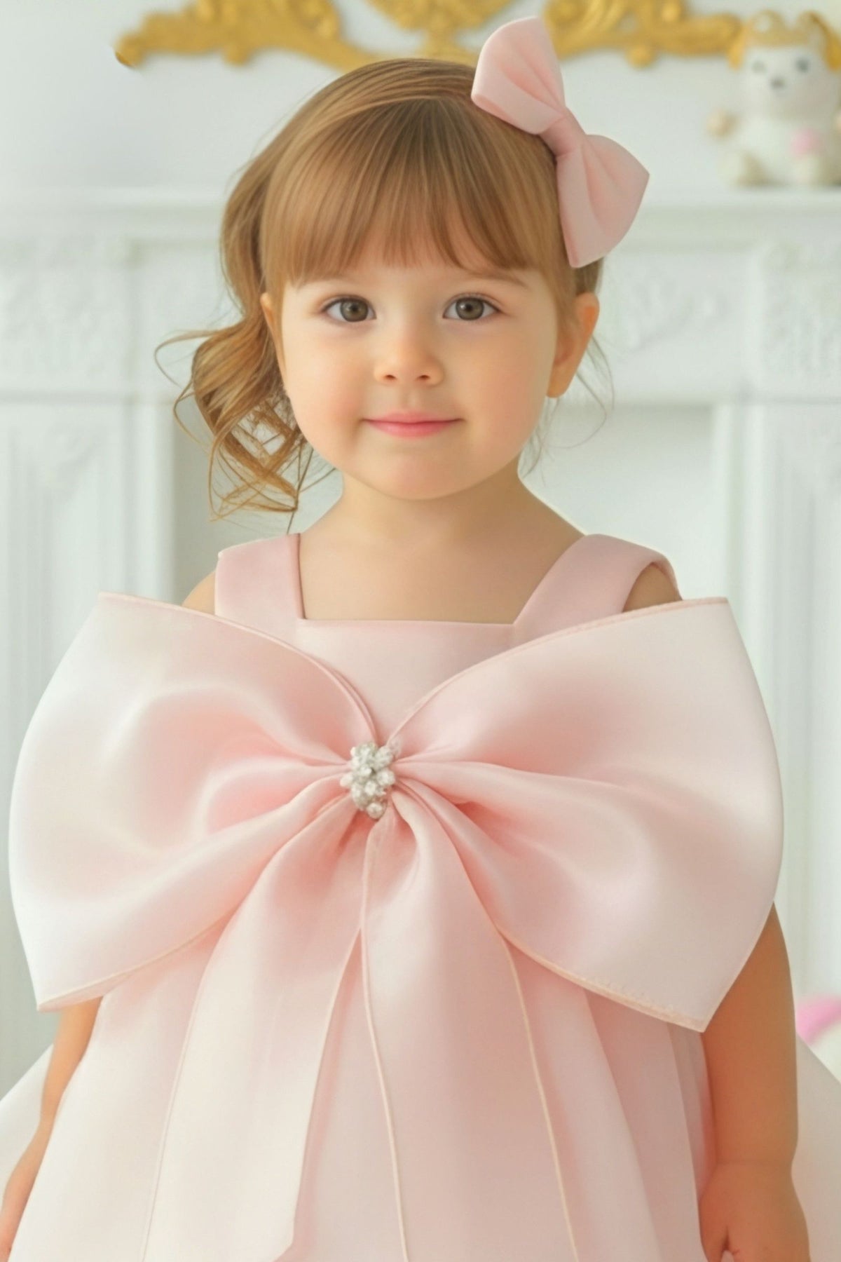 Peach Partywear Short Frock for Girls