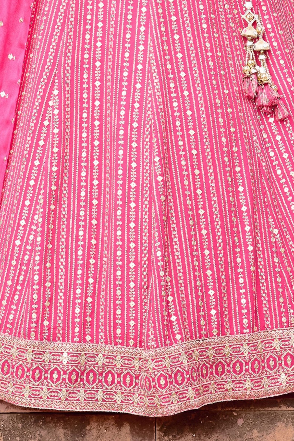 Pink Sequins, zari, Stone, Beads and Mirror work Lehenga Choli for Girls