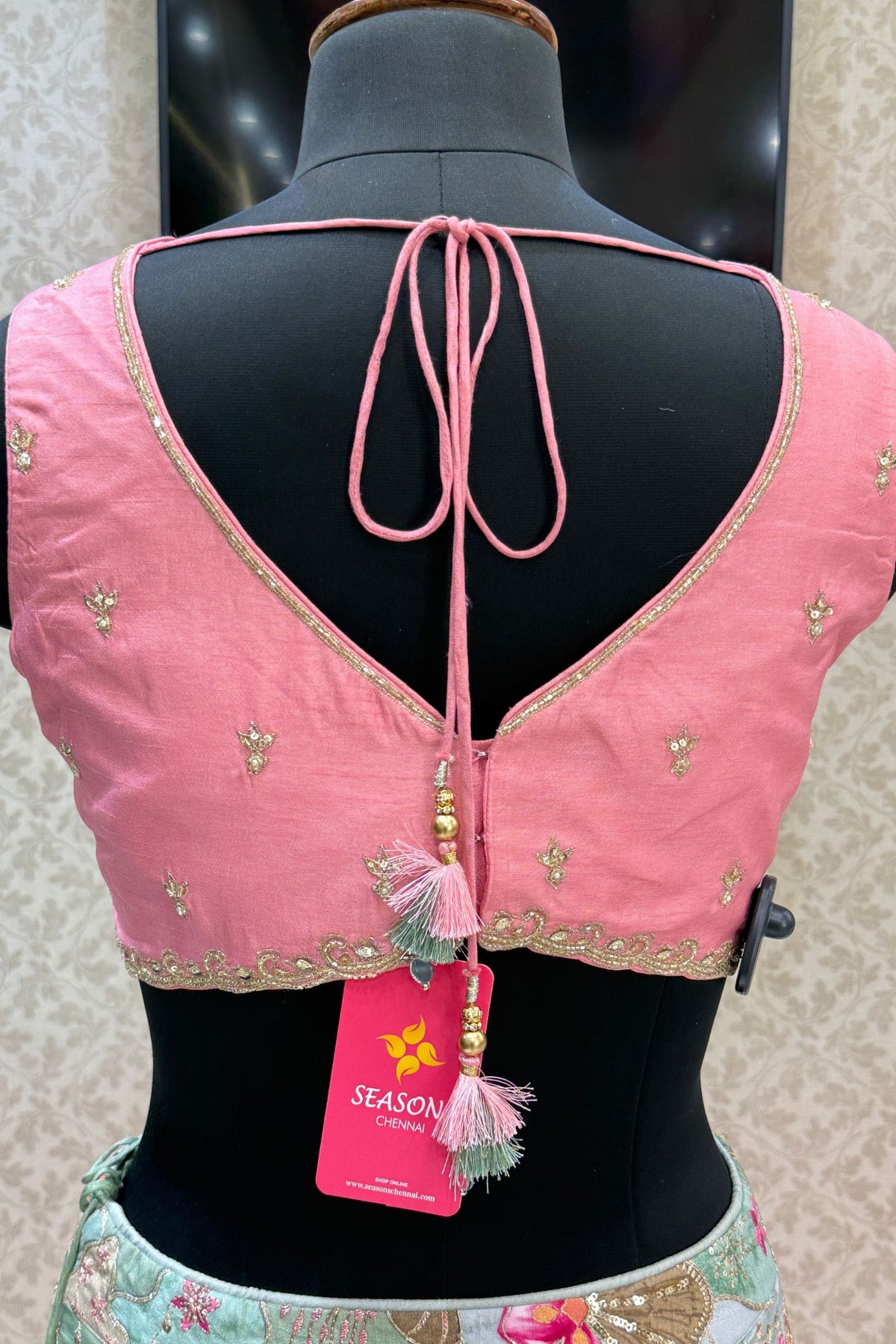 | Features | Floral Print, Beads, Zari, Stone, Pearl and Sequins work |