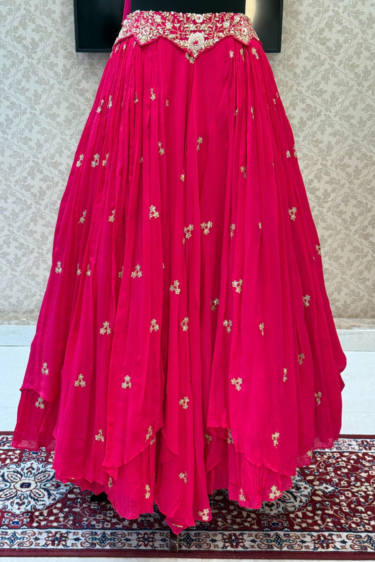 Rani Pink Sequins, Beads, Mirror, Zardozi and Zari work Crop Top Lehenga