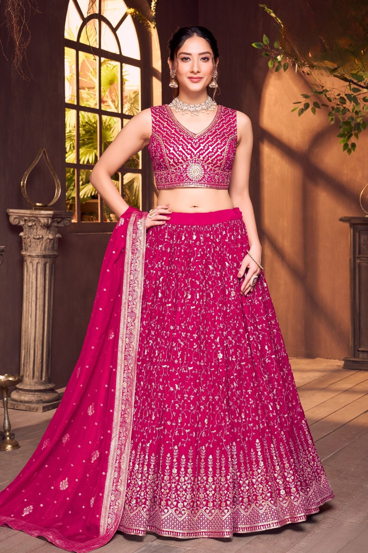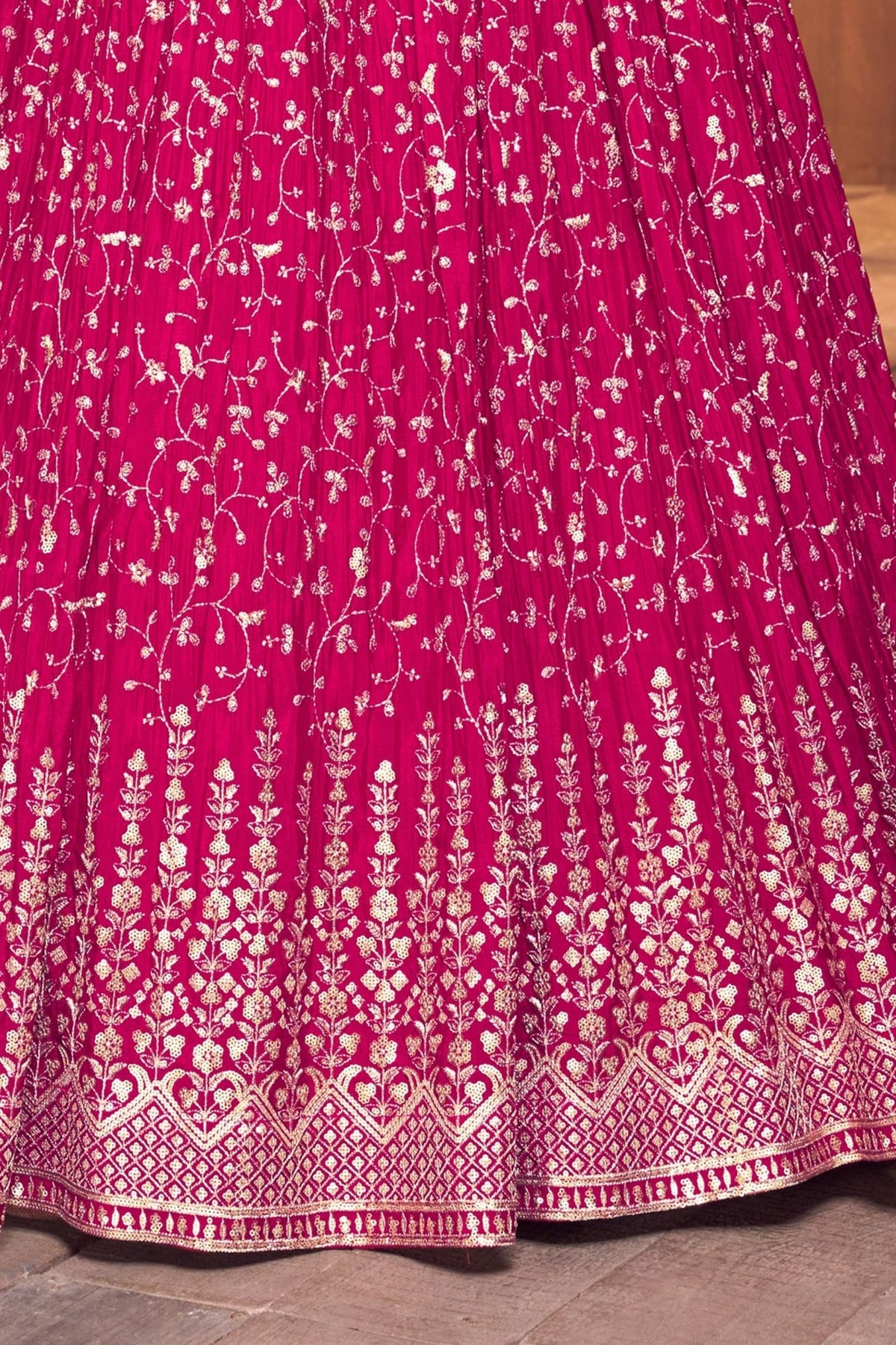 Rani Pink Sequins, Beads, Zari and Stone work Crop Top Lehenga