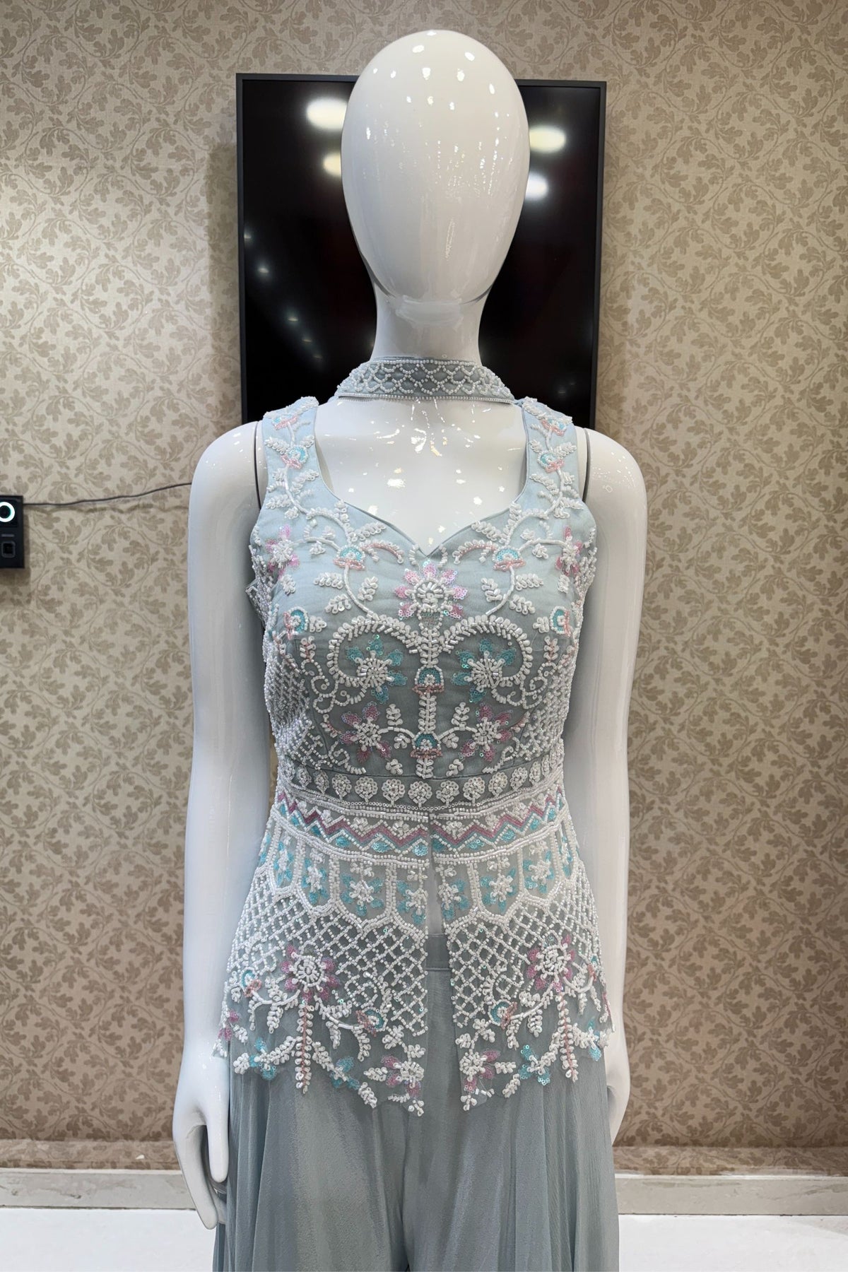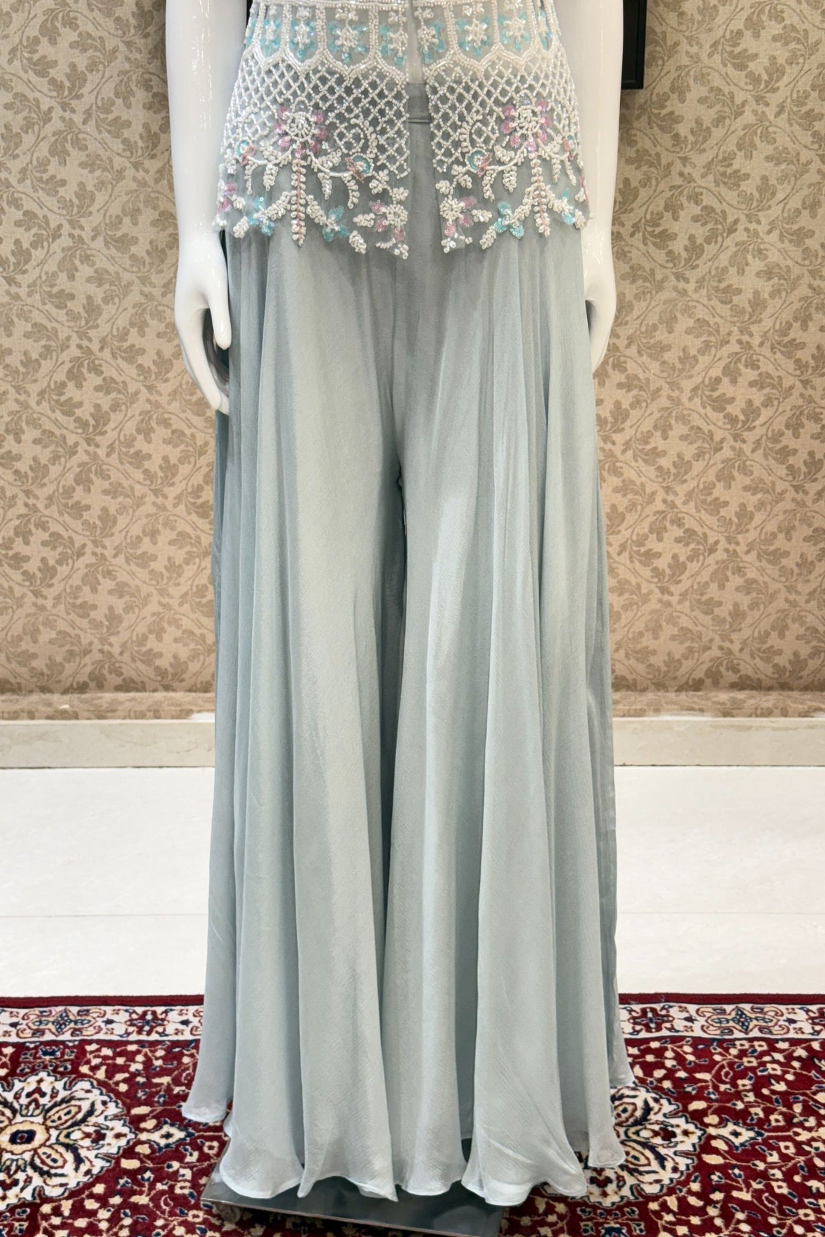 Sea Blue Beads and Sequins work Palazzo Suit Set