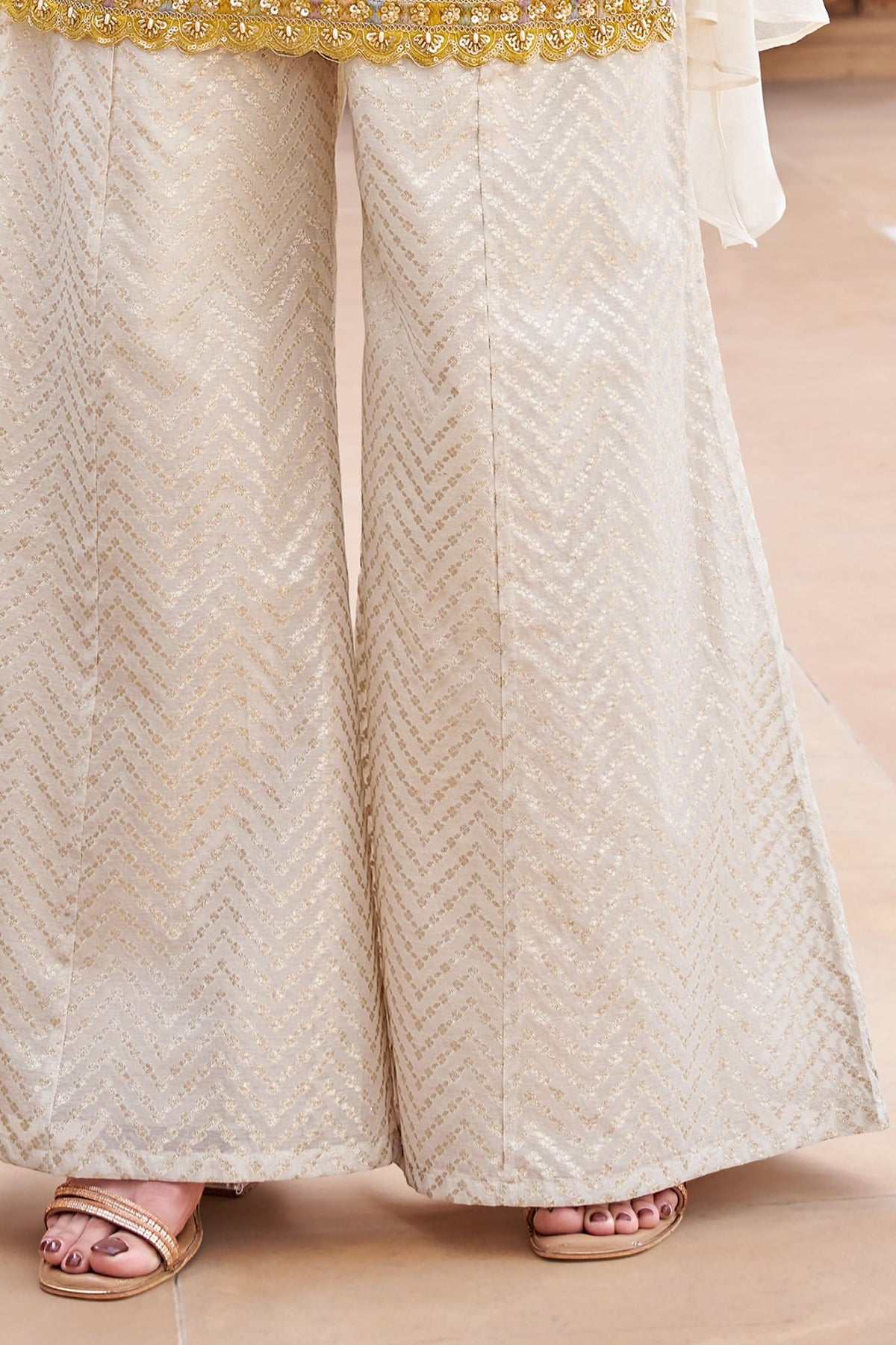 Yellow with Cream Jacquard, Pearl, Multicolor Thread and Zari work Palazzo Salwar Suit