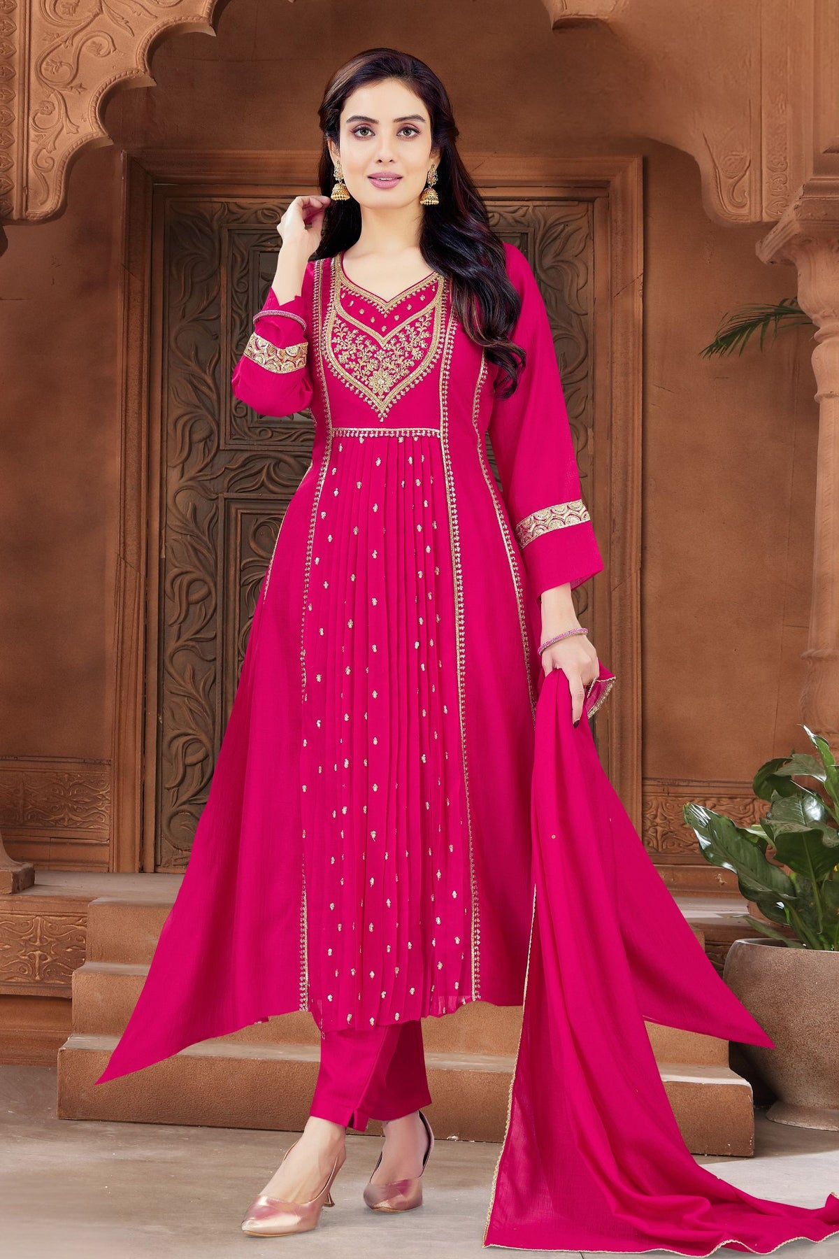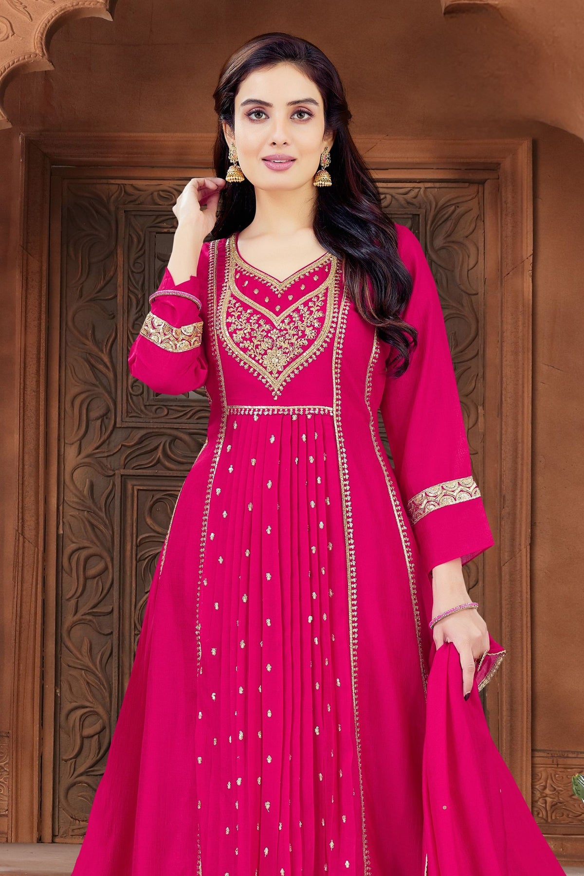 Dark Pink Sequins and Zari work A-line Cut Salwar Suit