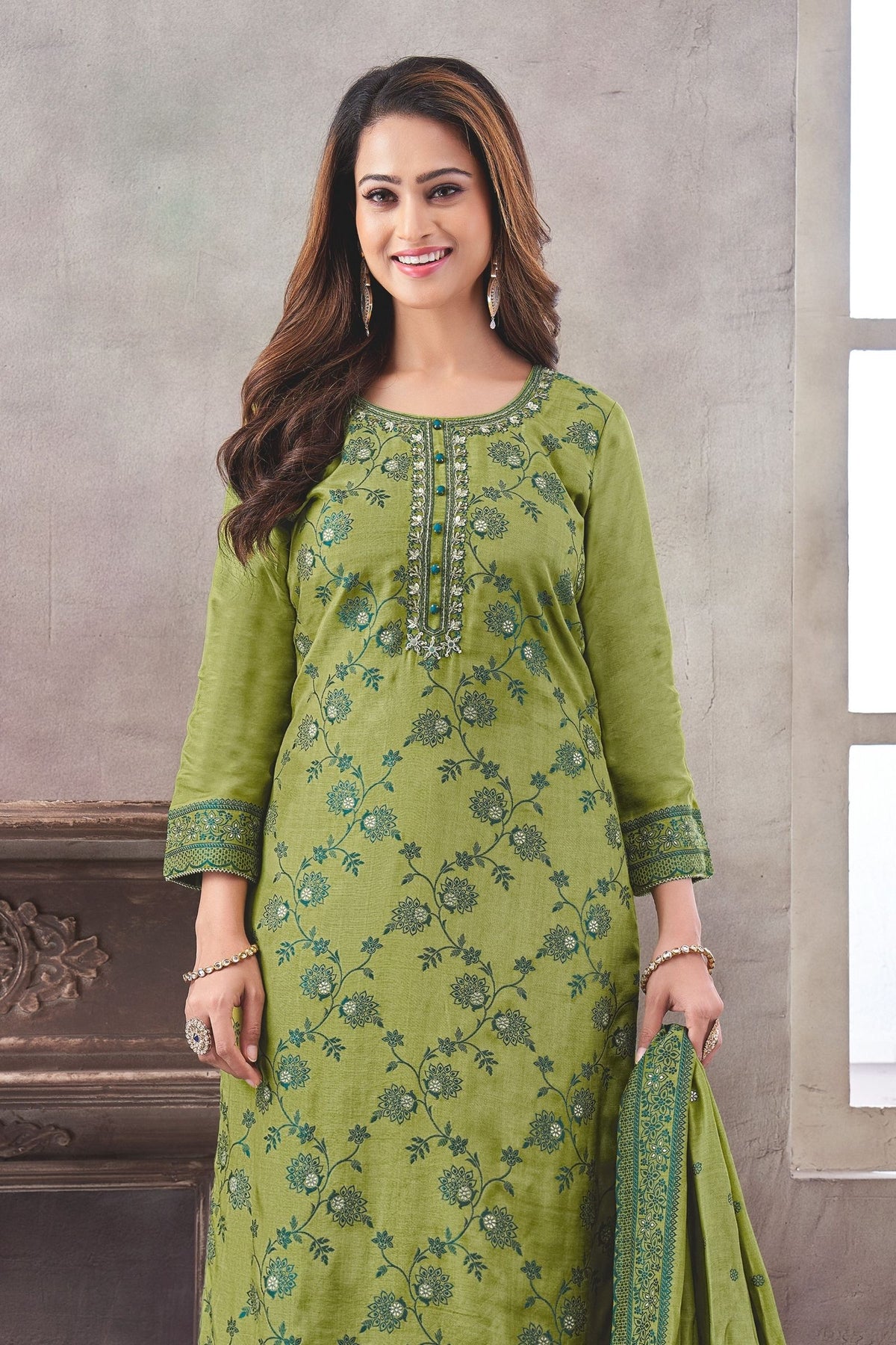 Green Beads, Sequins and Jacquard work Straight Cut Salwar Suit